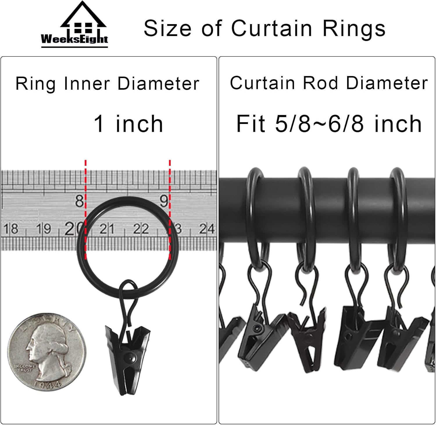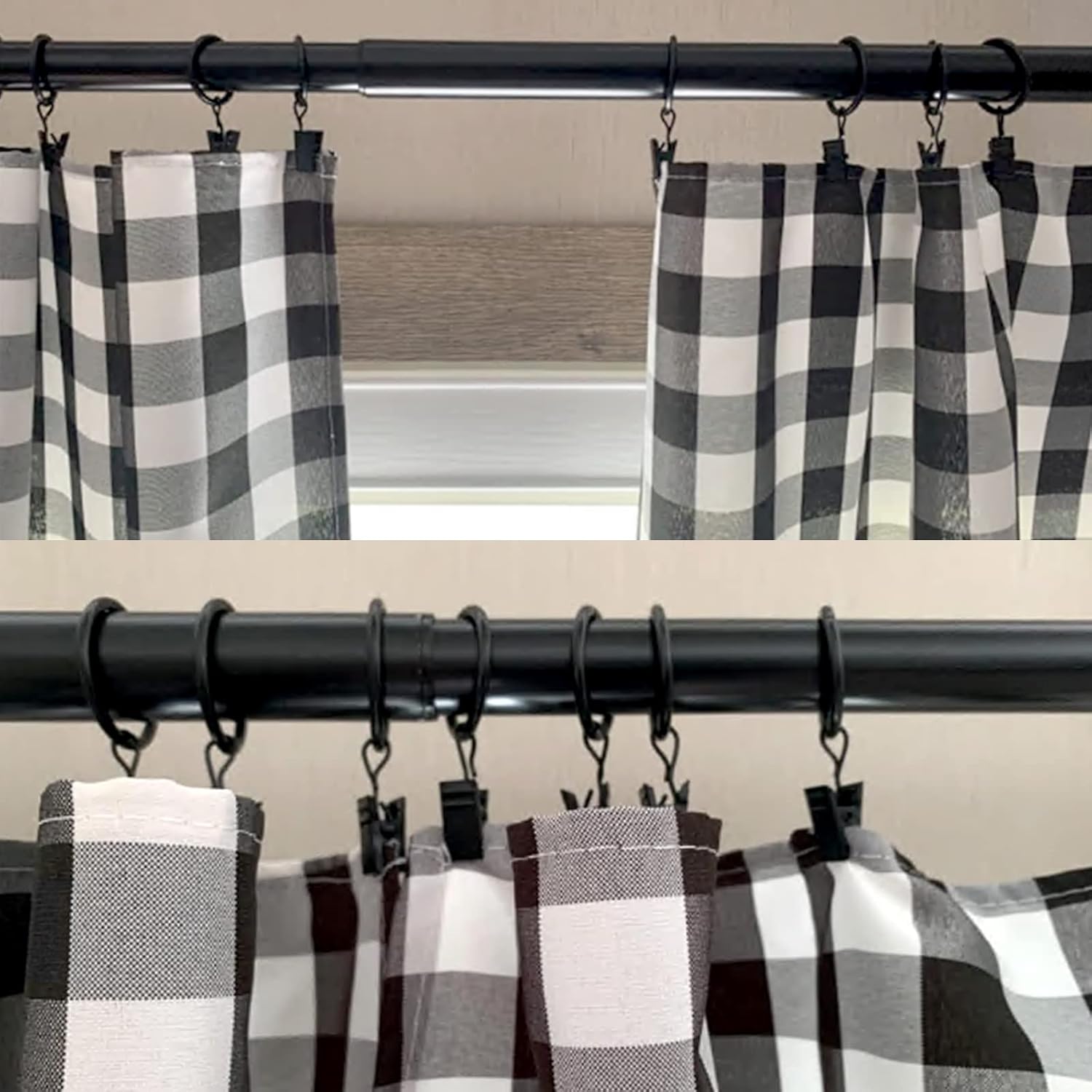 - 【Please Note】This rings fits 5/8 in or smaller diameter drapery rod, The clip is a little tight when it is opened for the first time, and it will be easy to open it when it is used again.