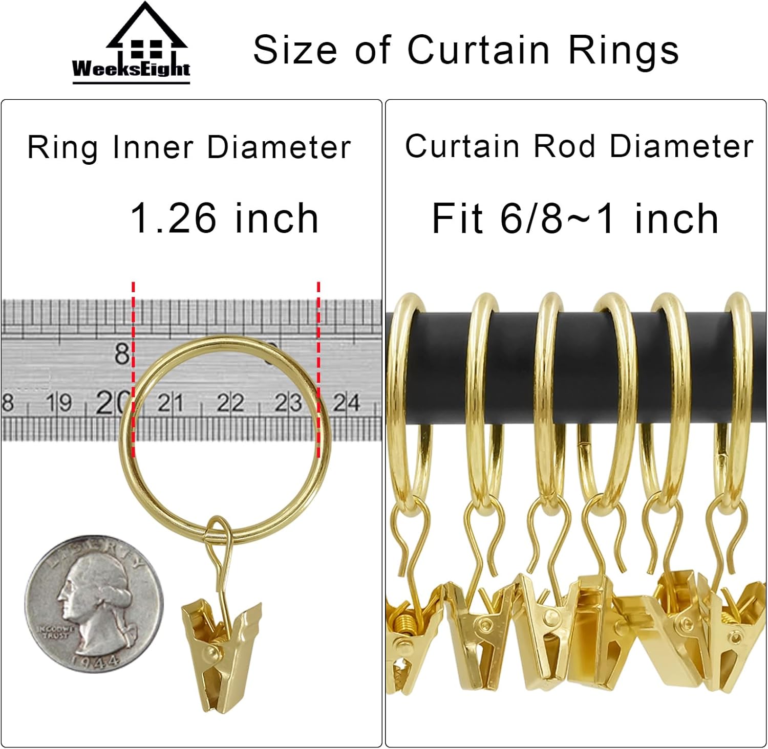 - 【Curtain Rings Slide Easily】Curtain rings eyelet inner diameter 1.26 in, drapery rings with clips for used in ones 1 in curtain rod and that’s the perfect size, the curtains slide easily, multiple times a day and function perfectly, make your life full of fun.