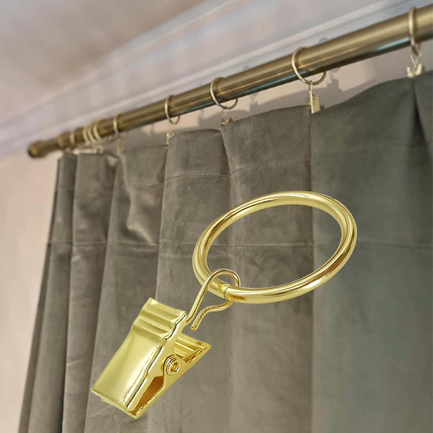 - 【Curtain Rings with Clips Package】Set includes 100 PCS gold curtain clips with rings, very suitable for hanging thick pleated curtain drapery drapes hangers fabric bows hat caps etc.