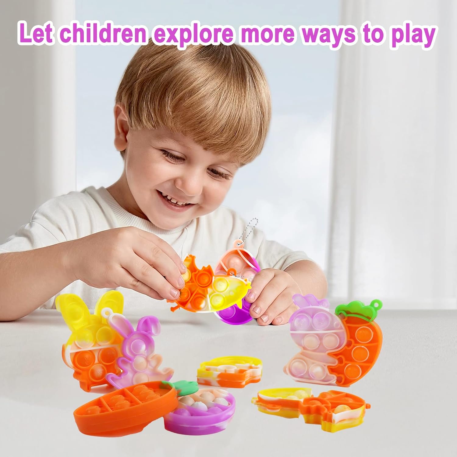 - 【Easter Gifts】The 24Pack Colorful Mini Easter Pop Fidget Toys are perfect for kids, boys, girls, toddlers easter basket stuffers, easter basket fillers, easter gifts, easter toys, easter hunt, party favors, birthday gifts, school classroom rewards, carnival prizes, pinata, goodie bags.