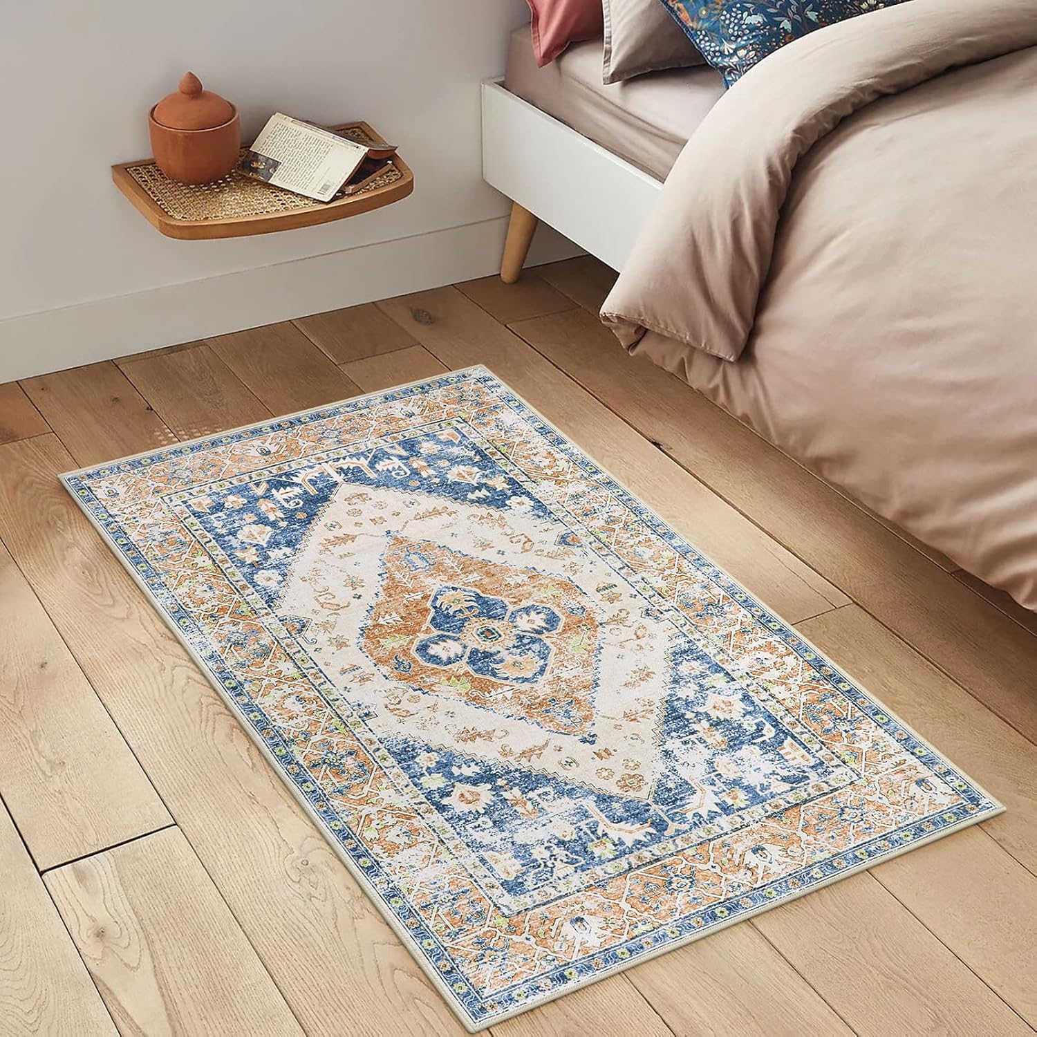 Lahome Boho Small Entryway Rug - 2x3 Non-Slip Washable Rugs for Kitchen Oriental Throw Ultra-Thin Area Rugs for Bedroom Accent Distressed Blue Floor Doormat Carpet for Bathroom Laundry Living Room