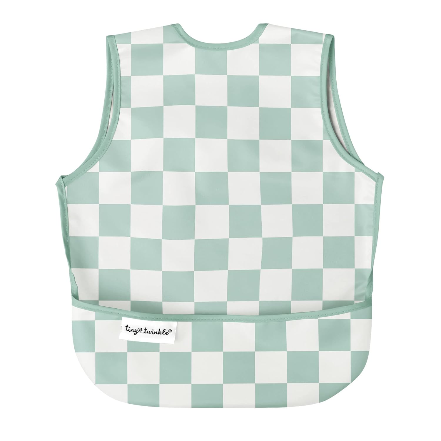 Tiny Twinkle Mess Proof Baby Bib - Waterproof & Lightweight Baby-Led Weaning Apron | 100% Recycled Polyester, Easy Clean & Machine Washable (Green Checkers, Small 6-24 Months)