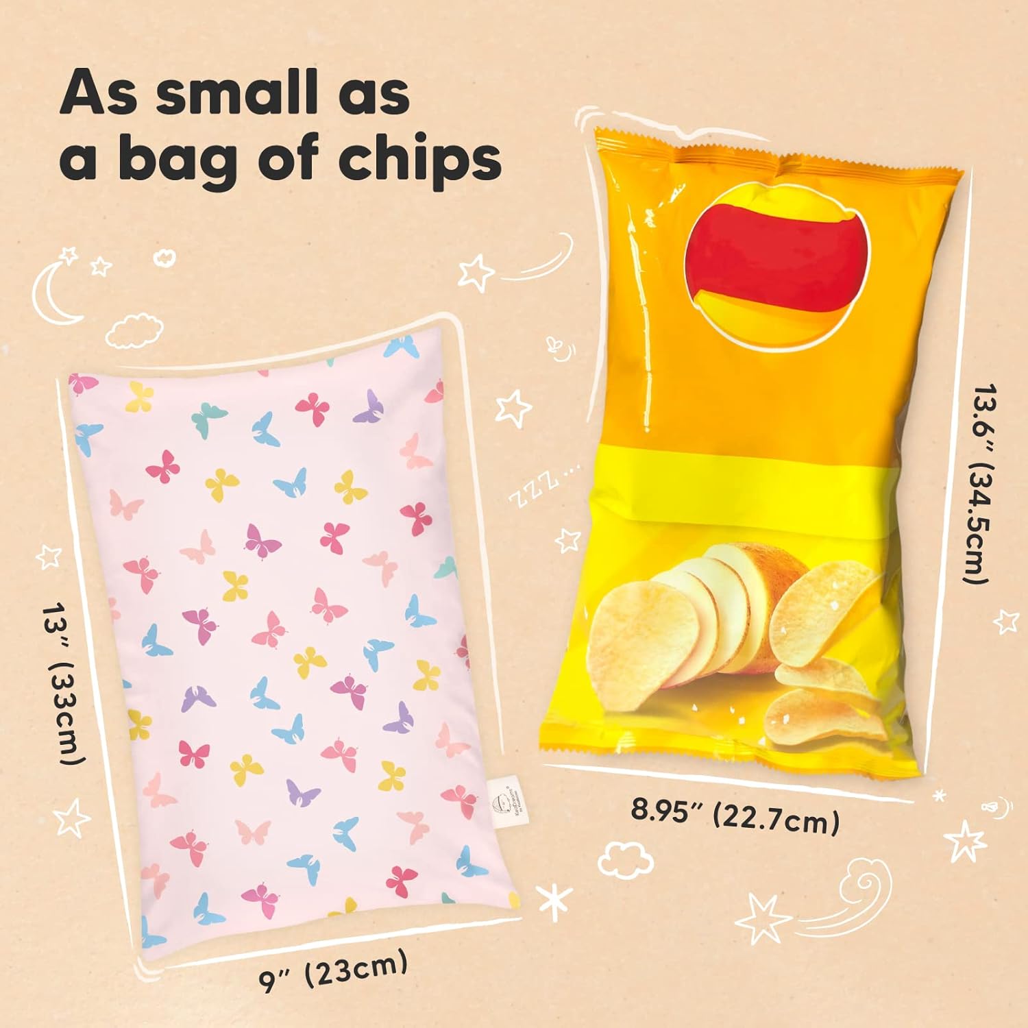Mini Toddler Pillow with Pillowcase - 9x13 My Little Dreamy Travel Kids Pillow for Sleeping, Toddler Bed, Small, Tiny, Organic Cotton Pillowcase, Soft & Breathable, Kids 2-4 Years Old (Flutter)