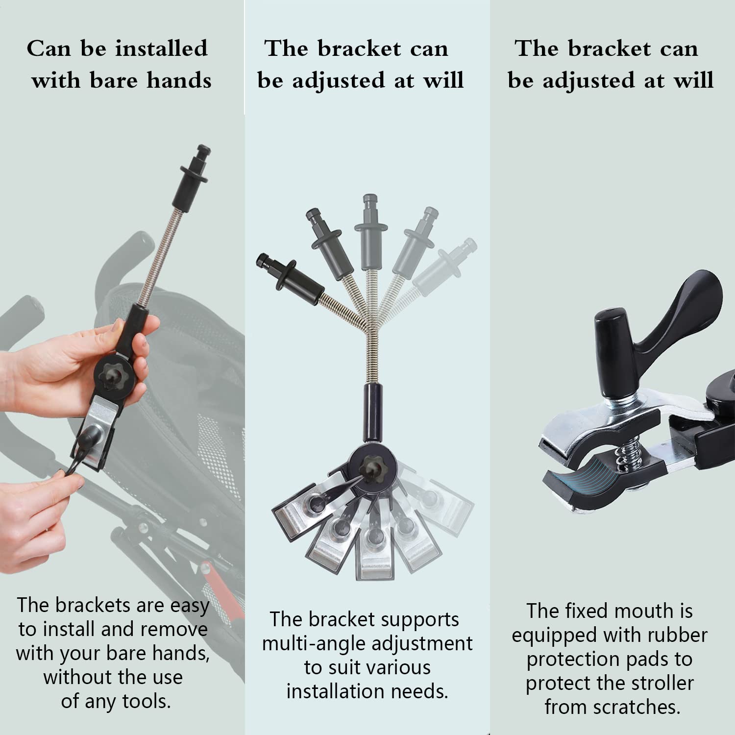 - Specifications: The opening diameter of the stroller umbrella is 95cm. It includes a removable clamp; We come with a storage bag; our stroller umbrella can be folded up and easy to carry when you don’t need it