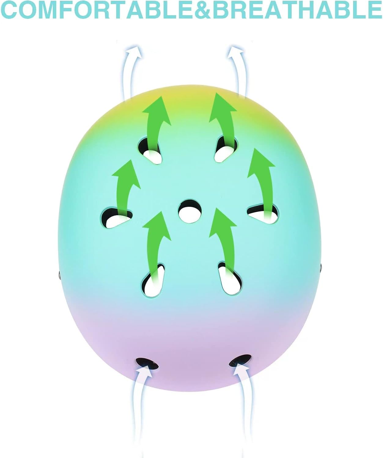 Color Gradient Adjustable Kids Bike Helmet Toddler Helmets for 3-5-8-14 Years Kids Girls Boys Youth Bicycle Helmet for Scooter Balance Bike Roller Skating Skateboard