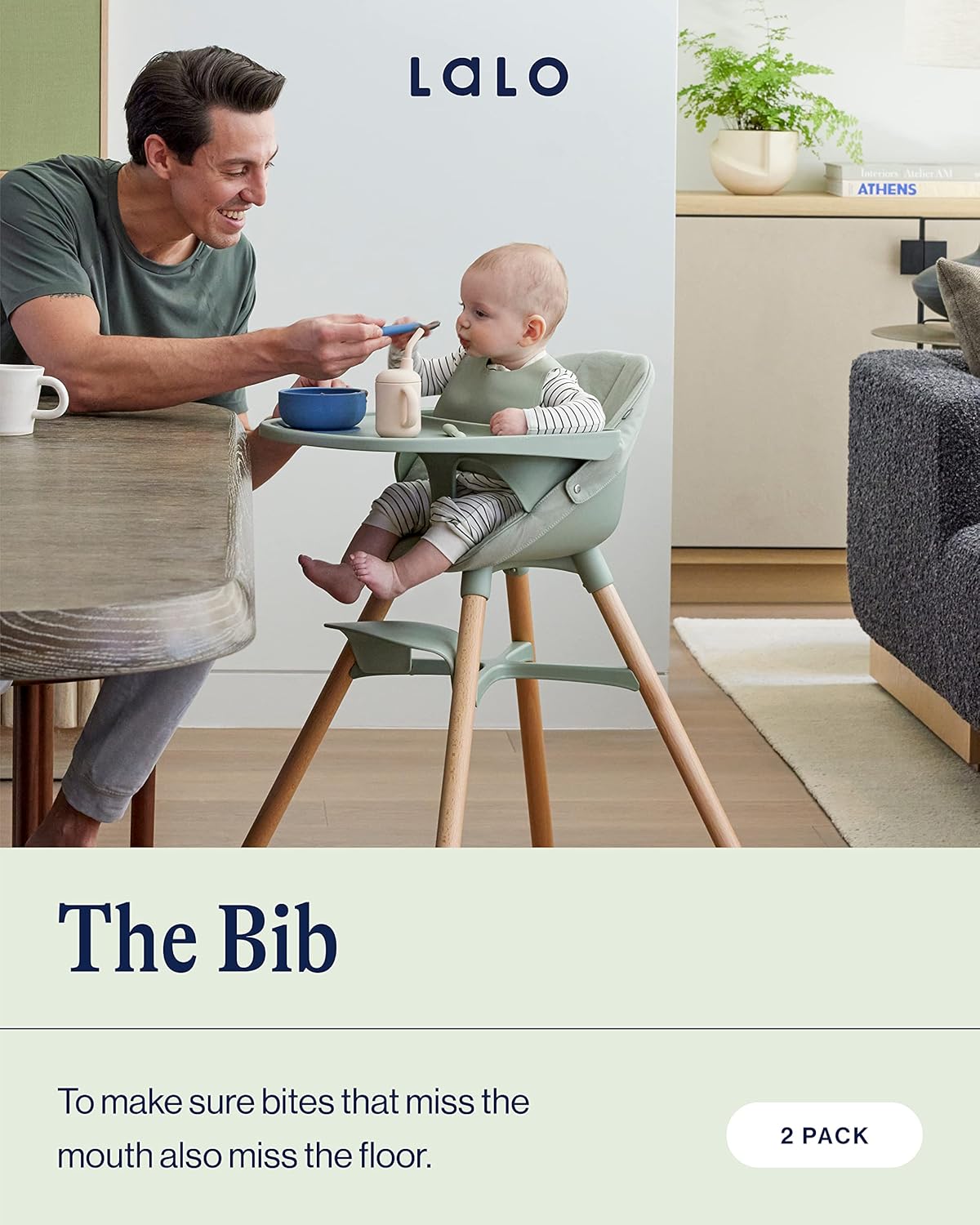 Lalo The Bib - Waterproof, Non-Toxic Silicone Baby Bib with Adjustable Neck Band & Silicone Food Pouch Catcher, Set of 2