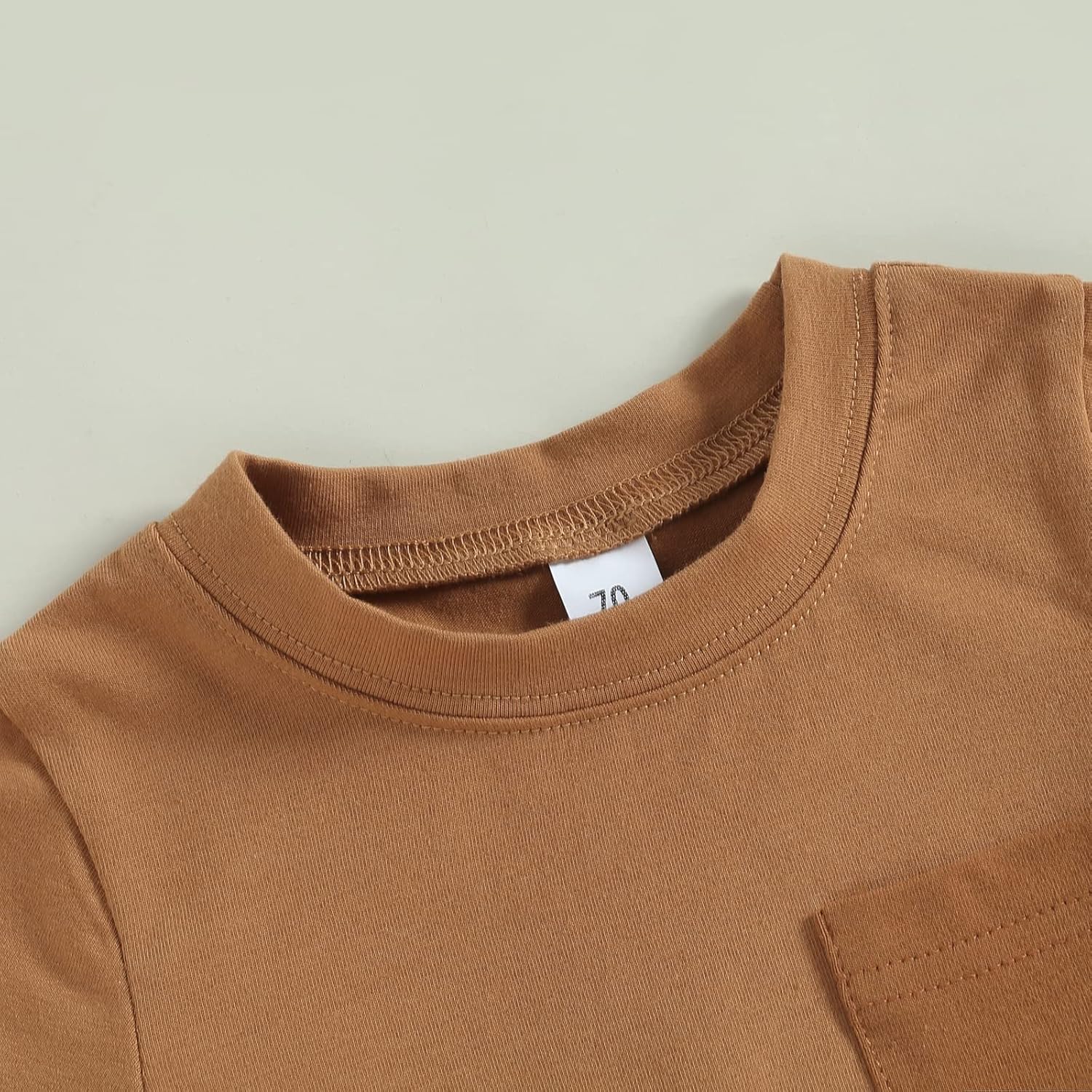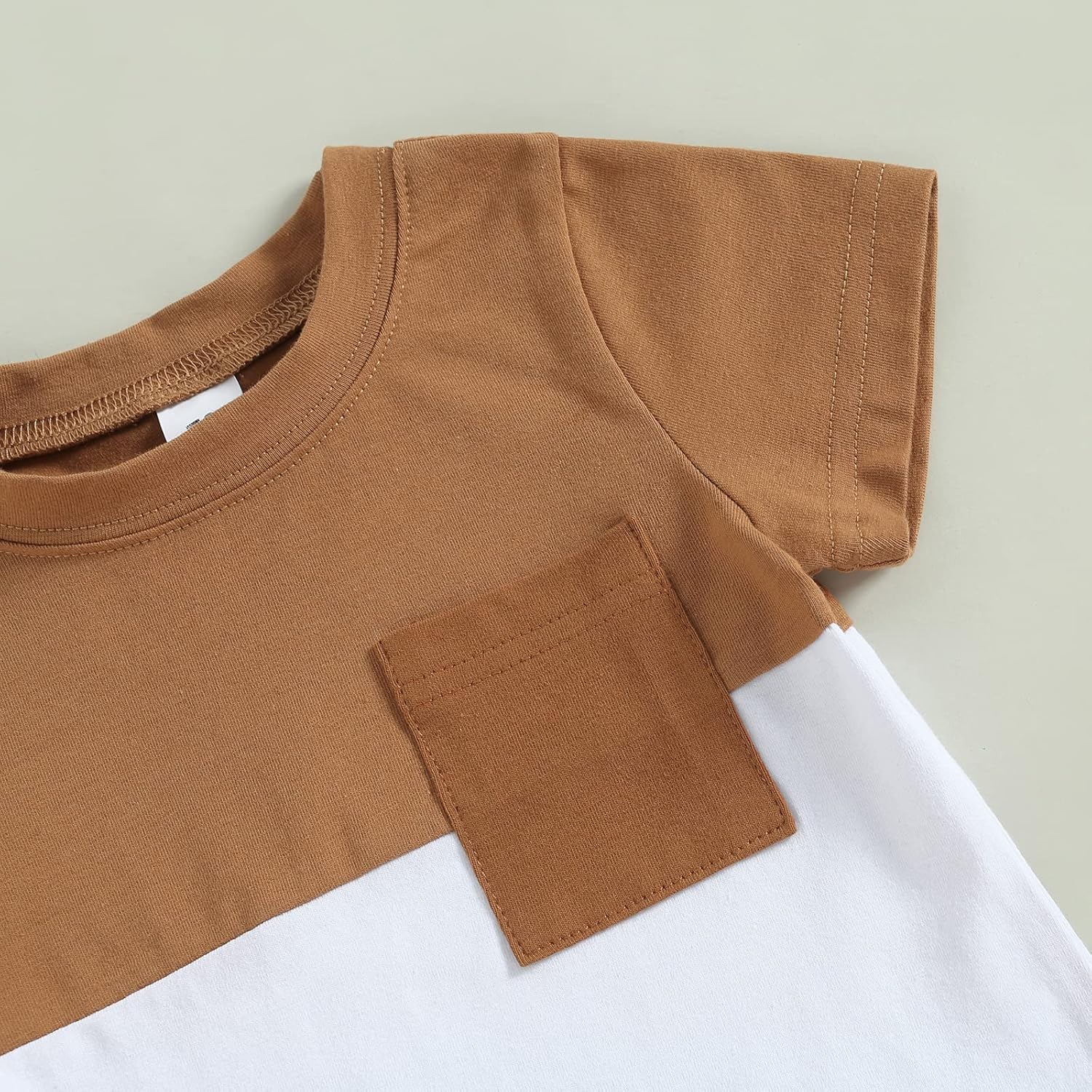 • Relax Crew Neck, One Pocket Front, Striped Pattern, Comfy Short Sleeve T Shirts Tee Tops, Elastic Waist with Drawstring Shorts, Side Pockets, Comfy and Cute Newborn Baby Boys Toddler Kids Summer Outfits Clothes