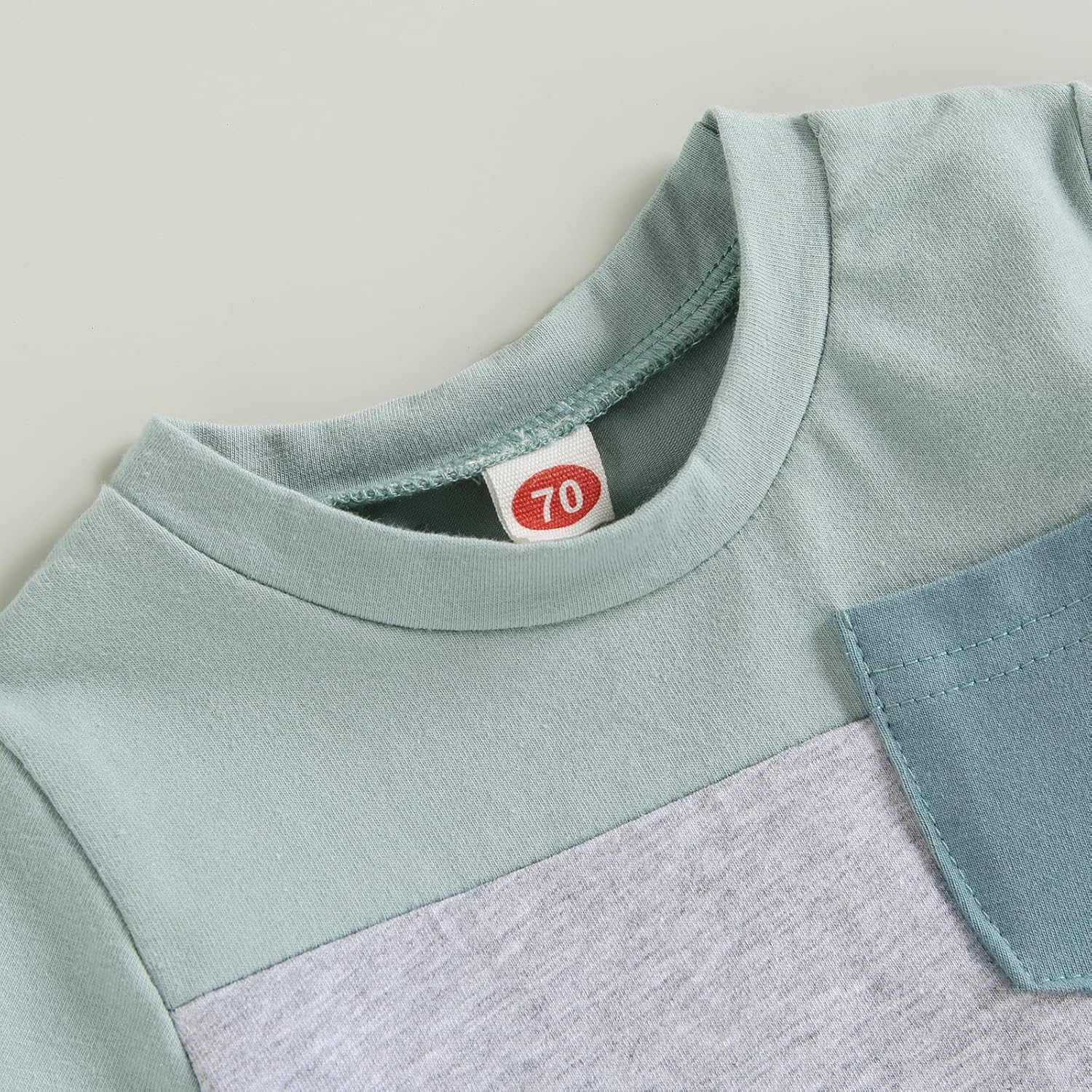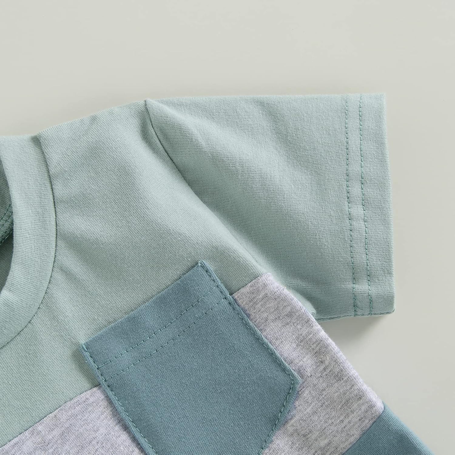 - Relax Crew Neck, One Pocket Front, Striped Pattern, Comfy Short Sleeve T Shirts Tee Tops, Elastic Waist with Drawstring Shorts, Side Pockets, Comfy and Cute Newborn Baby Boys Summer Outfits Clothes, Infant and Toddler Boy Comfy Cotton Shorts Sets