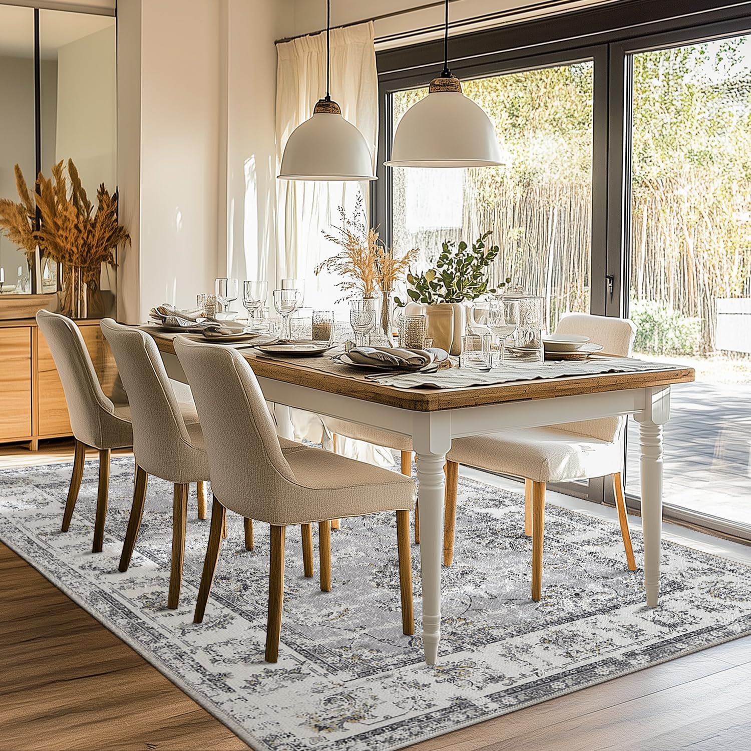 jinchan 9x12 Area Rugs for Living Room - Machine Washable Vintage Floral Distressed Design Stain Resistant Carpet Low Pile Non-Slip Large Rug for Bedroom Dining Room Home Office (9‘x12',Grey)