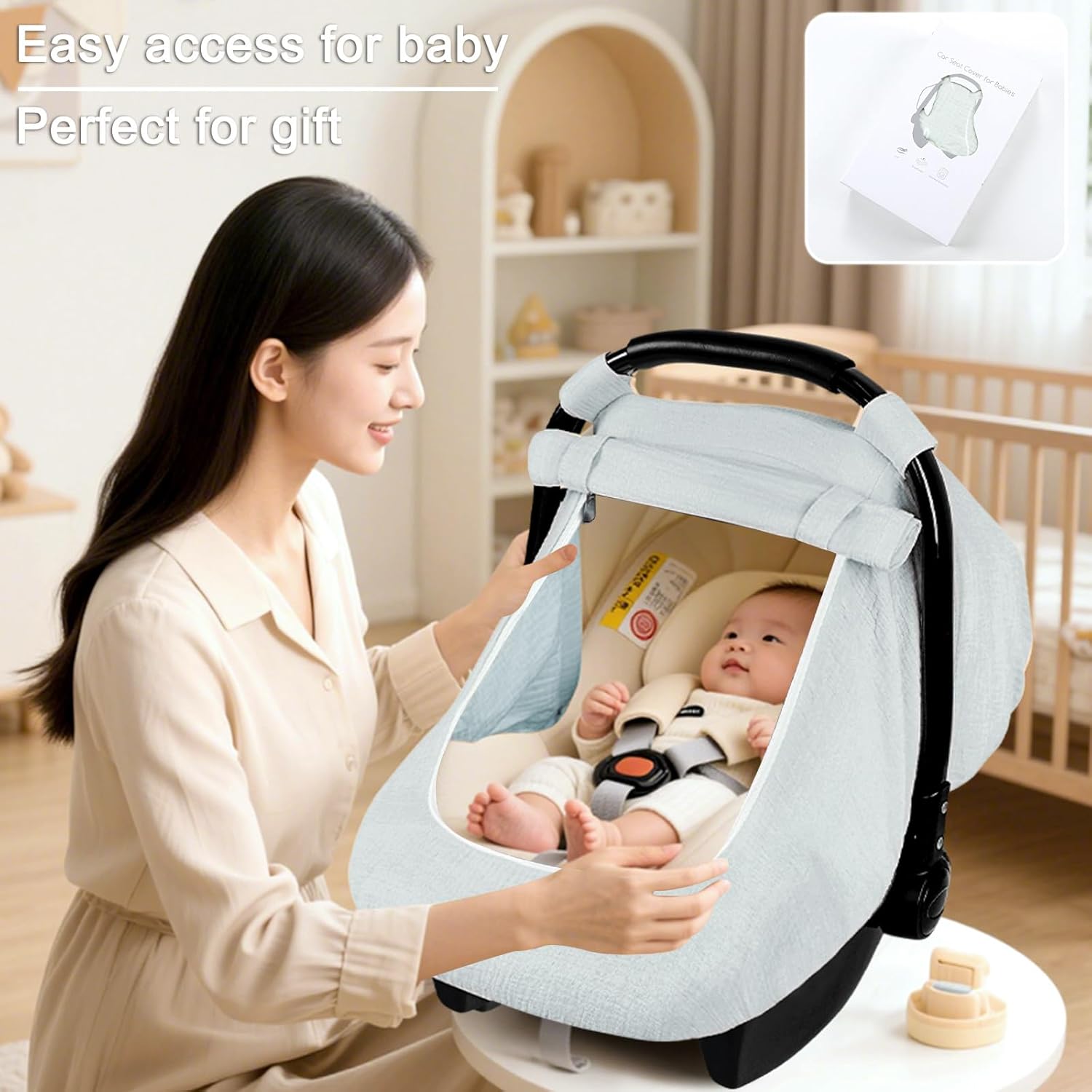 - BABY REGISTRY ESSENTIAL: Designed with solid style, our infant car seat canopy is a must for your baby registry. The muslin car seat canopy comes in an exquisite box and is a perfect gift choice for new parents, providing them with a practical and stylish accessory for their baby. Due to different lighting and angles when taking pictures, the images may be slightly different from the real thing