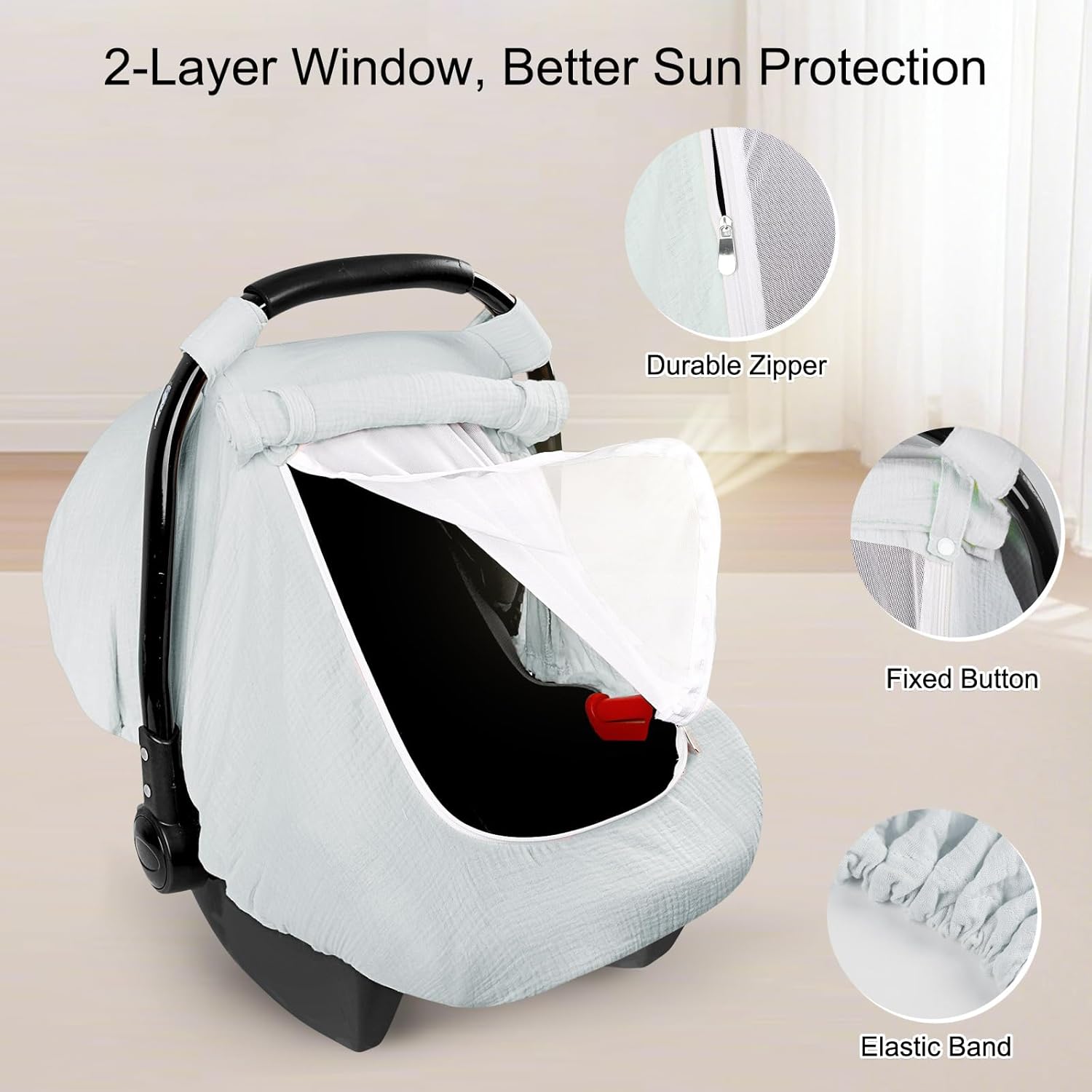 - BREATHABLE AND LIGHTWEIGHT: The baby car seat cover is made of high quality Muslin Gauze material, soft and breathable, the baby won't getting overheated in the car seat when the weather is hot. Muslin fabric is particularly lightweight and thin, which does not cause much weight while carrying your baby
