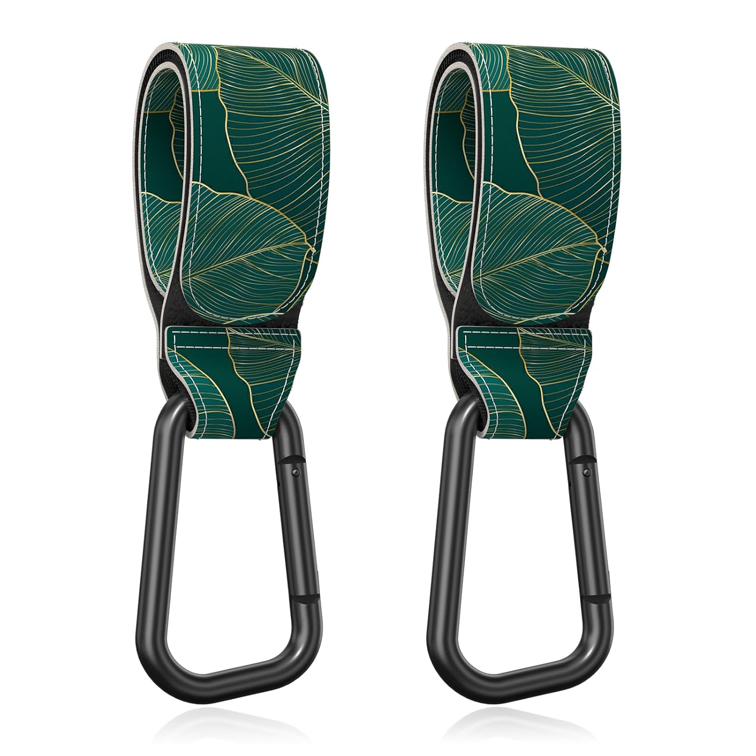 Baby Stroller Hooks for Hanging Bags, Universal Stroller Clips Accessories, Mommy Hook for Diaper Bag, Shopping Cart, Purse, Backpack - 2 Pack, Green Leaf