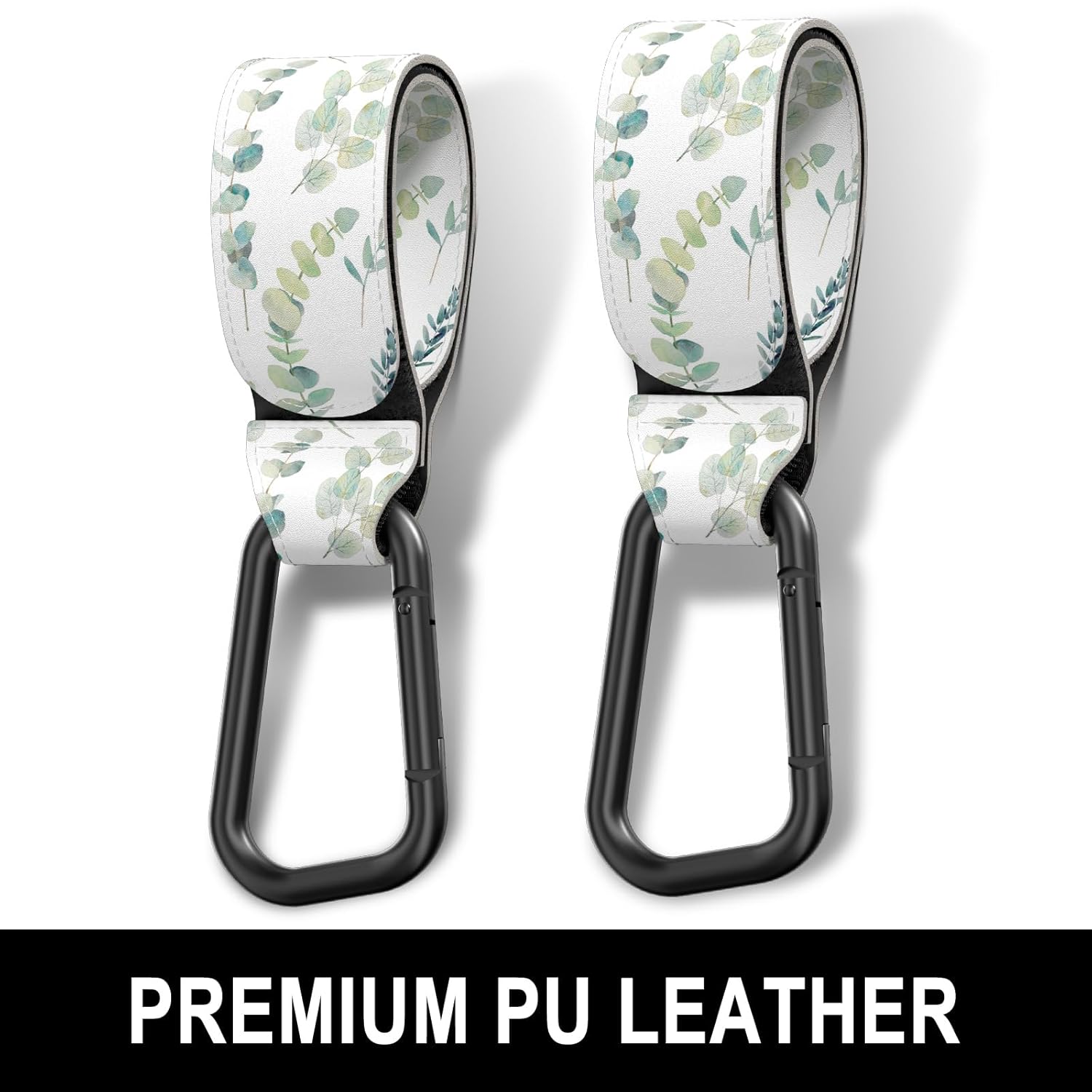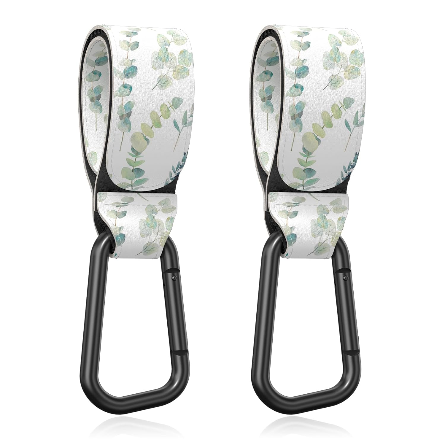 Baby Stroller Hooks for Hanging Bags, Universal Stroller Clips Accessories, Mommy Hook for Diaper Bag, Shopping Cart, Purse, Backpack - 2 Pack, Eucalyptus
