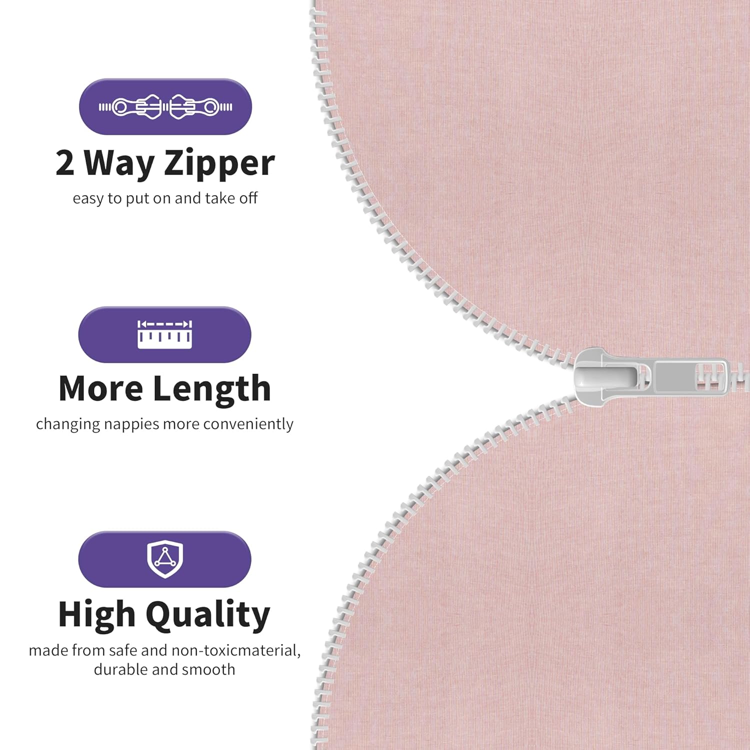 - High Quality Zippers: Our zips have been repeatedly tested 10000+ times to ensure smoothness in use. Easy to put on and take off with 2-way zipper. 20% more in length make it more conveniently to change nappies