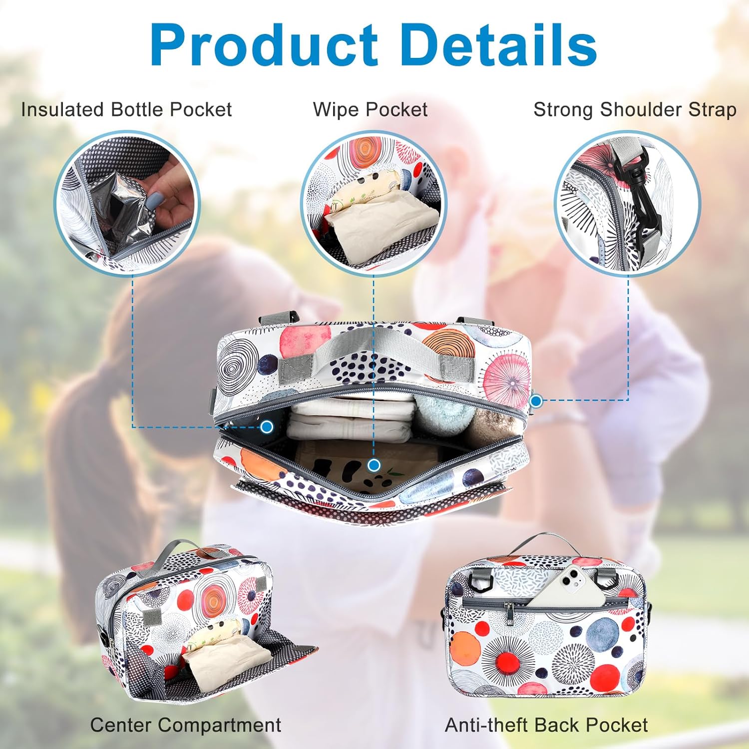 - Multi Structure: Designed with 1 insulated cup holder for baby bottle; Large pocket for storage baby diapers, wipes, toys etc. Convenient wipe opening for easy access of wet wipes ; The back pocket convenience for place cell phone, keys. wallet etc .