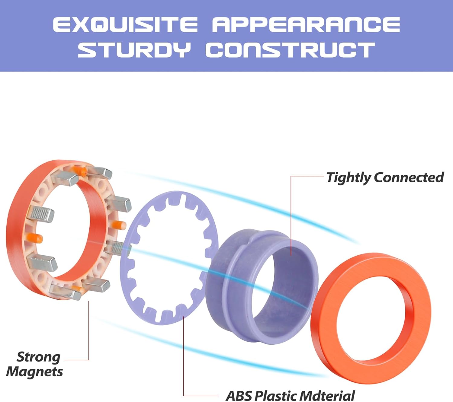 - New Design Fidget Rings for Anxiety: 15Pcs colorful magnetic rings fidget toys are made with high quality plastic and safe material. Use upgraded AAA+ N52 magnets with super magnetic adsorption. Round corner, No oil or maintenance needed. Light weight and easy to carry, rounded smooth surface can protect fingers from scratches.