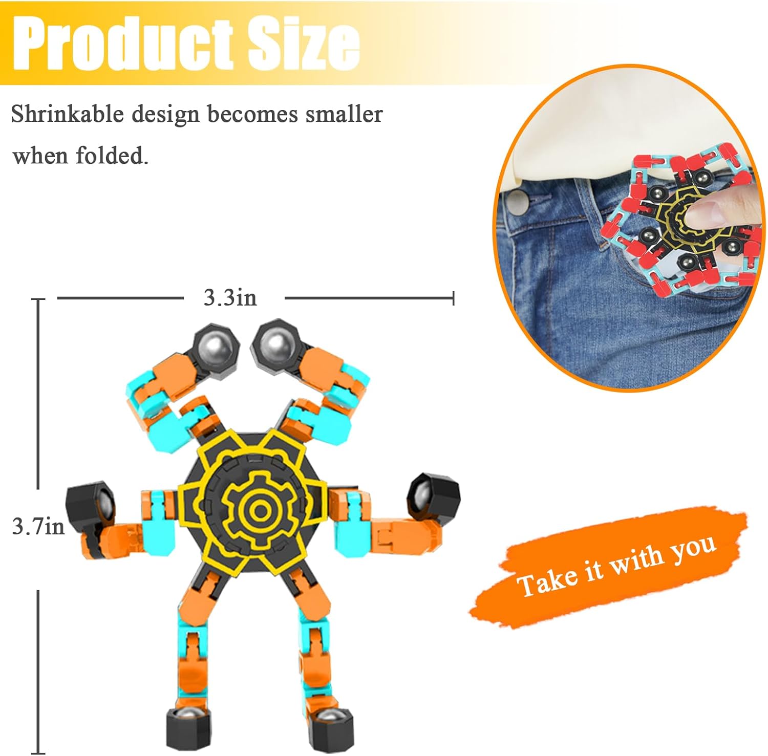 - 【Metamorphosis Finger Spinners】:Includes 4 colors (red, yellow, blue, purple) finger gyroscope. Each fidget spinner has six deformable chains. Each link can be rotated and locked to 5 positions, and you can create any shape you want. By changing the shape of the toy, you can also exercise your child's hand-eye coordination, hands-on ability and logical thinking ability.