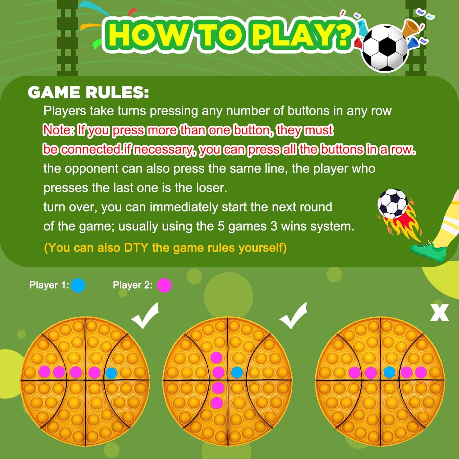 - Football Games for All Age Groups: Sports toys for boys, players take turns continuously pressing any number of keys, and the player who presses the last mouse loses. These stress relieving toys are great for everyone. For kids and adults, fidget toys bulk fidgets gifts are perfect for friends to spend a happy stress-relieving time together. It's a good helper to relieve anxiety. By squeezing our silicone bubble push fidget toy, you can get mental comfort and emotional release.