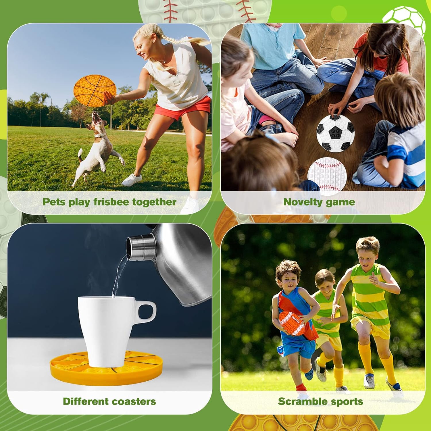 - 4 Styles Sports Toys for Boys:This set of fidget sensory toy has 4 different ball shapes. Sports fidget toy pack including basketball push bubble toy, rugby push bubble toy, volleyball push bubble toy and soccer push bubble toy. These fidget toys for anxiety are exquisitely crafted and colorful. Can help children recognize a variety of different fidget toys. Push fidget toys sports is beneficial for cultivating children's sports interests.