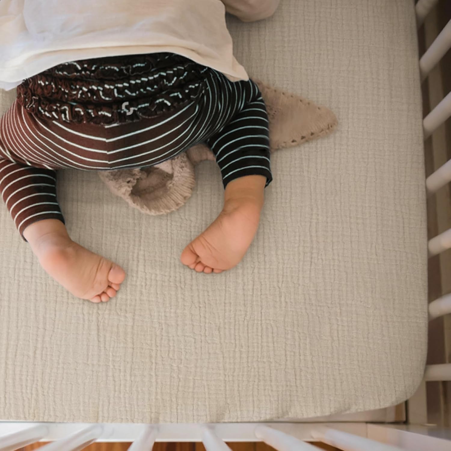 - Muslin Cotton: The muslin mini crib sheets are soft and breathable to give your baby a cozy place to sleep. They make a smoother transition from snuggled in your arms to safely sleeping in their mini crib.