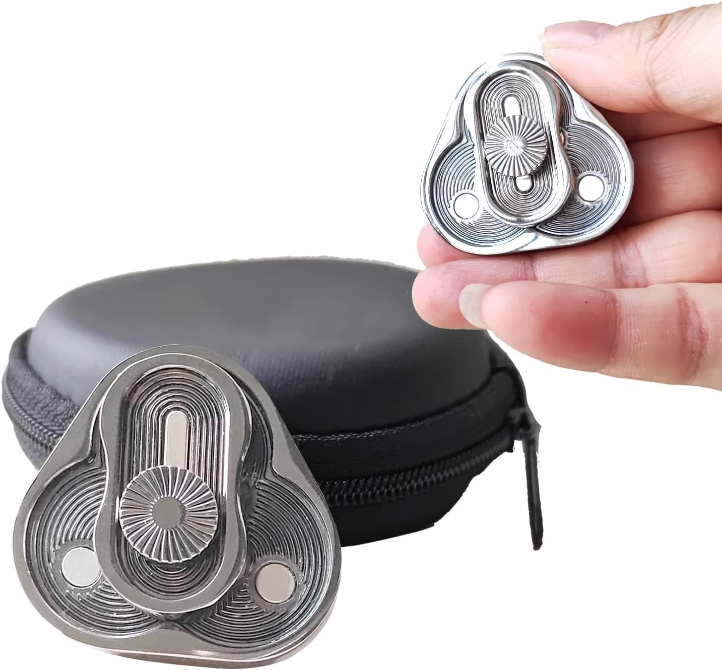 - 【Product Design 】The rotating magnet fidget slider consists of three metal bodies. The novel triangle and clover shapes, with spiral textures carved on both sides of the front and back, greatly increases the friction with the hands, making it smoother to use. Every detail of the slider fidget toy has been precision machined, the surface is delicate and smooth, and it is more comfortable to hold.(Note: Please look for the USFSFHSJ store).