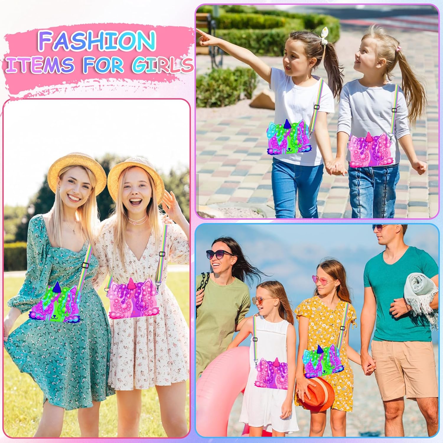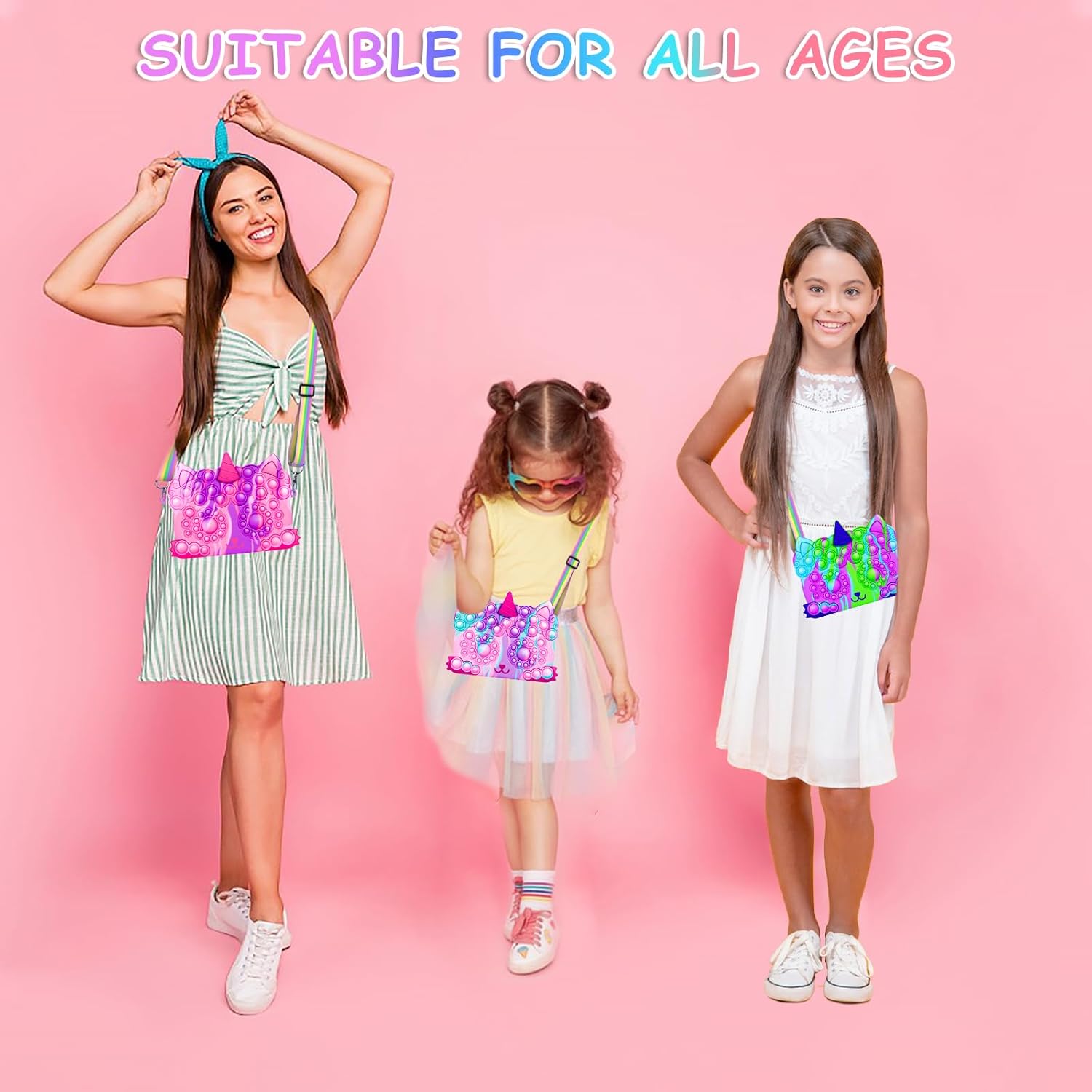 - Great Sensory Fidget Toys: 2 Pack Unicorn Purse Pets- A push bubble fidget toy, A purse wallet and A shoulder bag (3 in 1). Pressing the bubbles on the bag will make "POP" sound which is attractive. The push bubble shoulder bag is the most popular designed for stylish girls and kids. Suitable for girls of all ages.