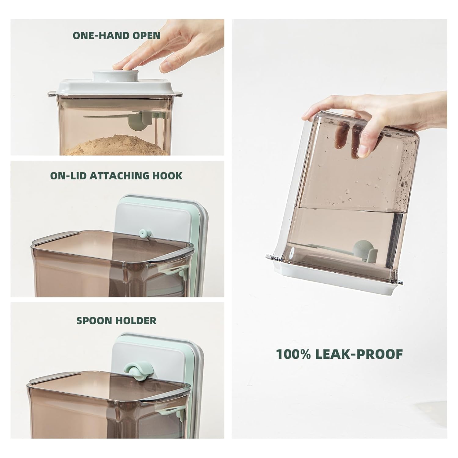 - User-Friendly Design: Our one-button design ensures easy access to the formula, making it perfect for travel. Our protein powder container comes with a replaceable spoon holder and a convenient lid hook to simplify your routine.