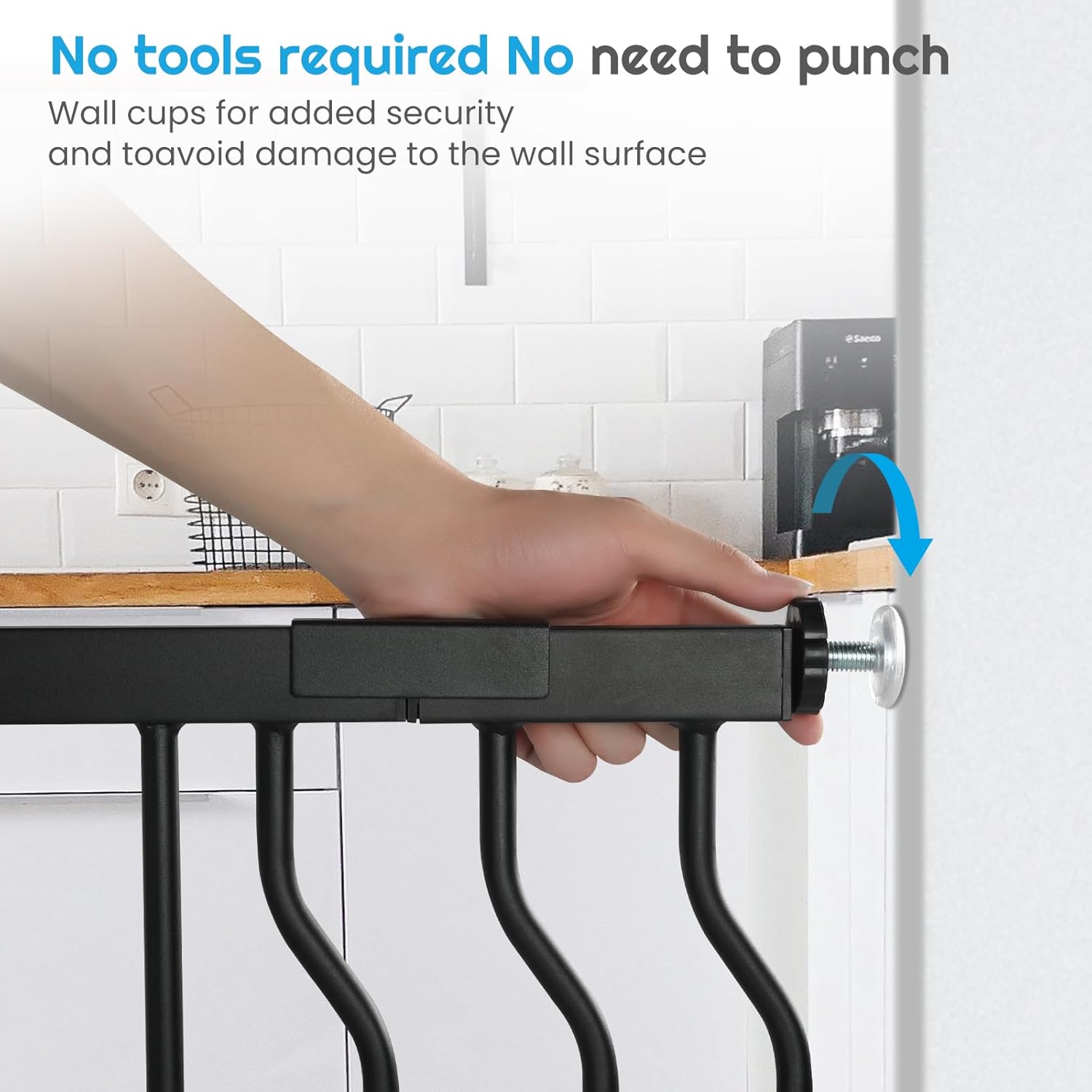 - Wide and Spacious Design: With an adjustable width ranging from 47.7-57.1 inches, this black gate fits most doorways and staircases. The spacious walk-thru design makes it easy to navigate while holding your baby, making it an excellent choice for new parents. Ensure that every entry point in your home is safe and secure.
