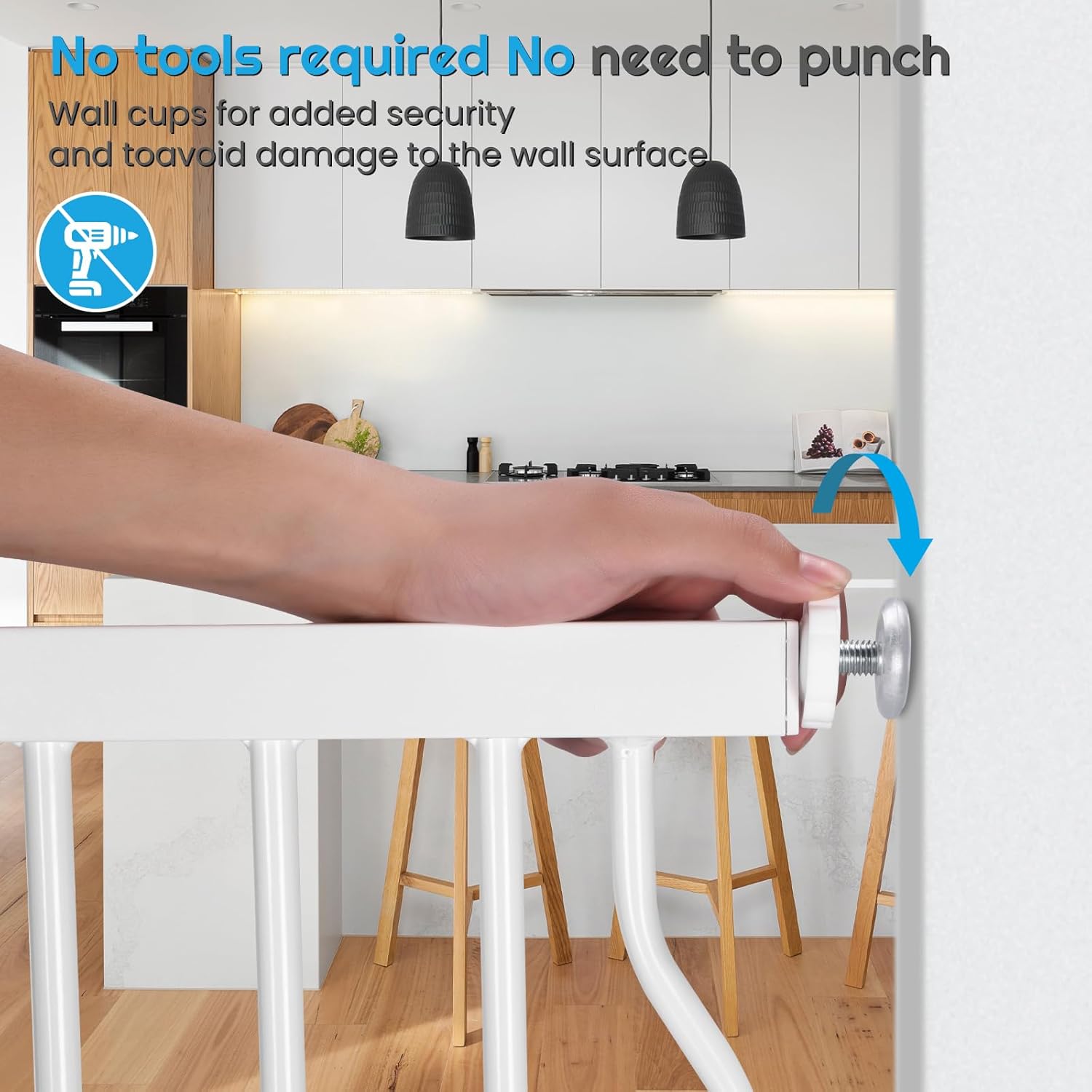 - Hassle-Free Installation: Pressure mounted tension baby gate with 4 pressured adjustment bolts can be easily and quickly installed within 10 minutes. No drilling or tools needed to protect your walls from damage. Note: Please do not remove the zip tie which is to fix the latch to the frame for easy installation until baby/child safety gate is completely assembled, and recommend to carefully read our assembly instructions & user manual before installing.