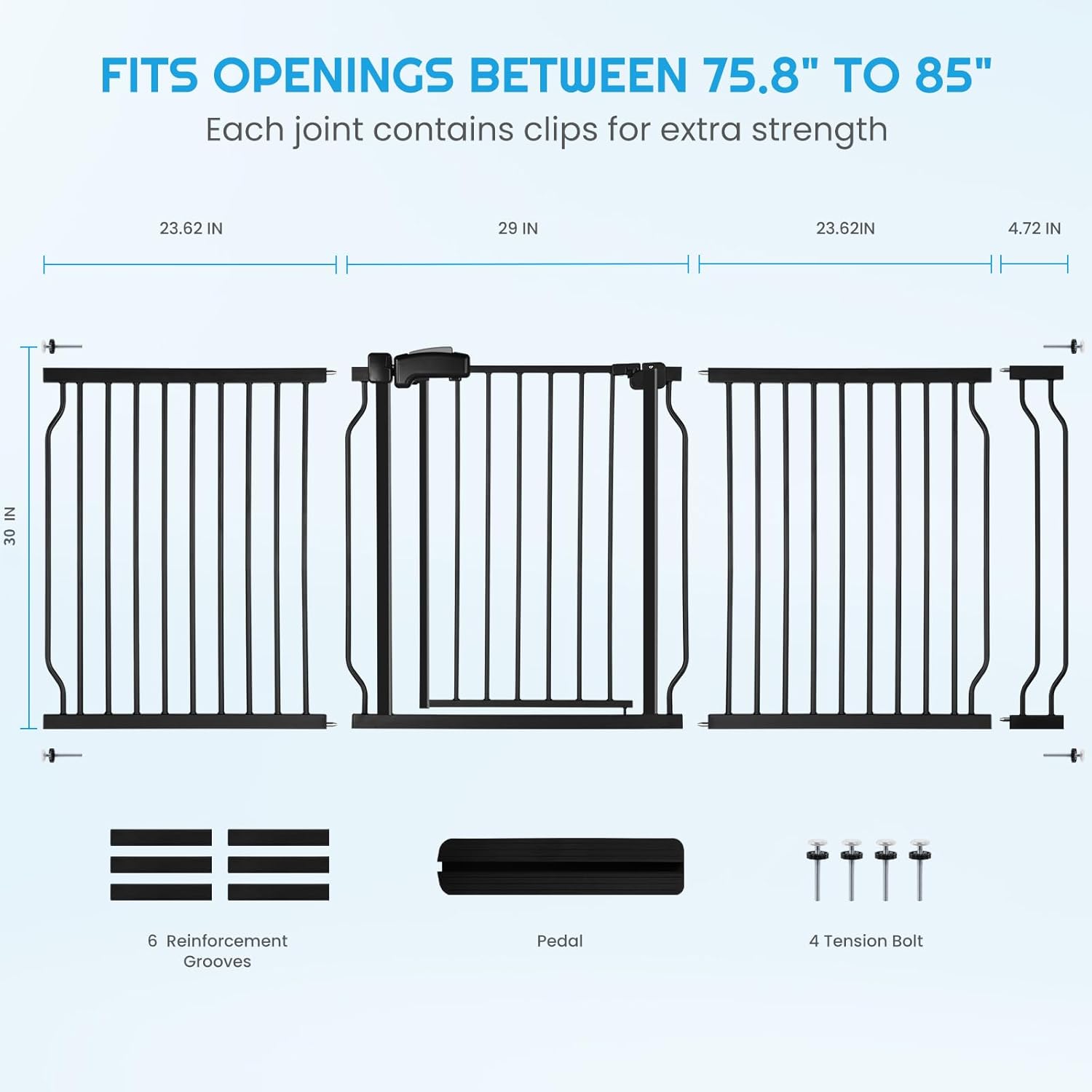 Extra Wide Baby Gate for Stairs Doorways with Door, 30" Tall 75.8-85" Wide Easy Install Dog Gate Indoor, Safety Metal Pressure Mounted Pet Gate with Walk-Thru Auto Close for The House, Black