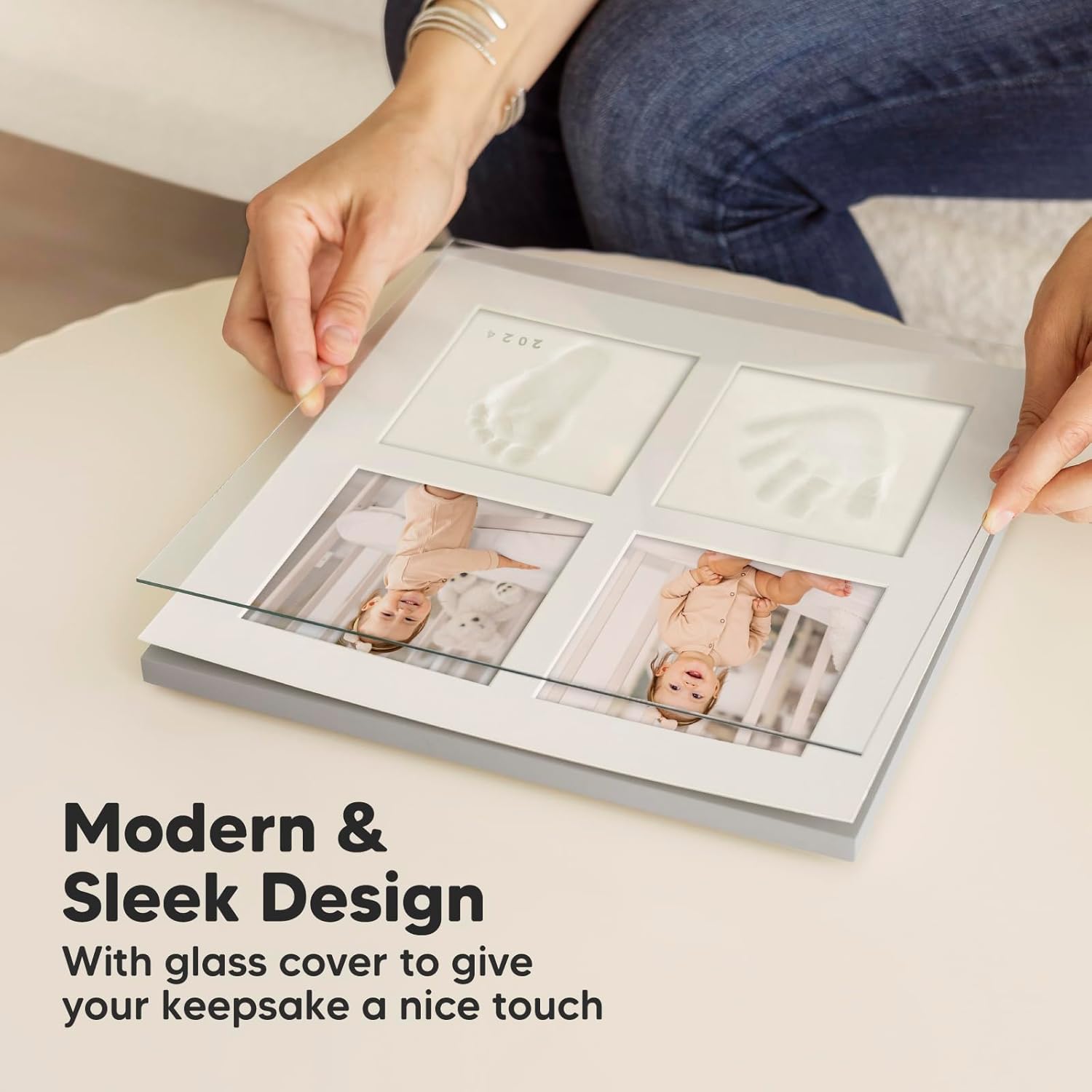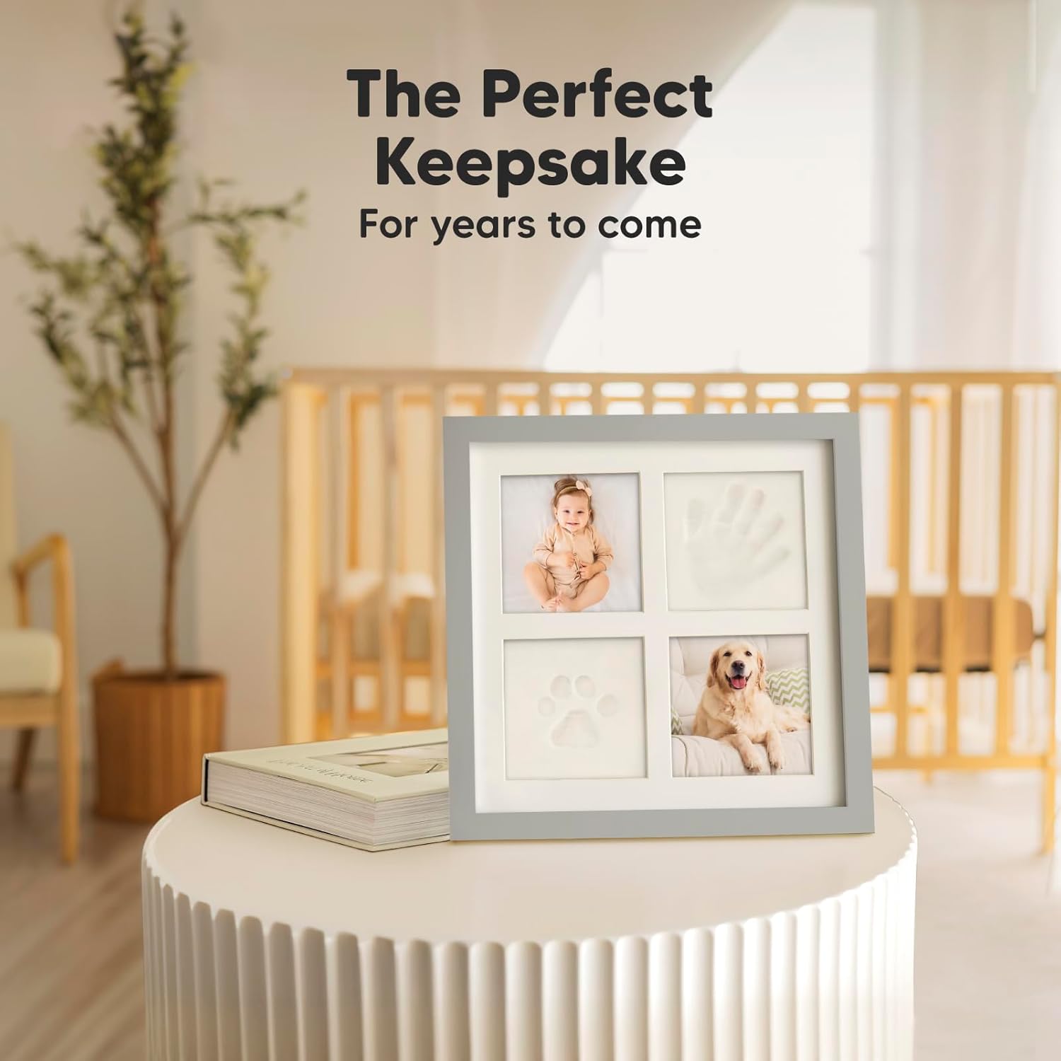 Baby Hand and Footprint Kit - Baby Footprint Kit, Clay Handprint Keepsake Frame, Nursery Picture Frame For Newborns, Personalized New Mom Gifts for Showers & Registry (Cloud Gray)