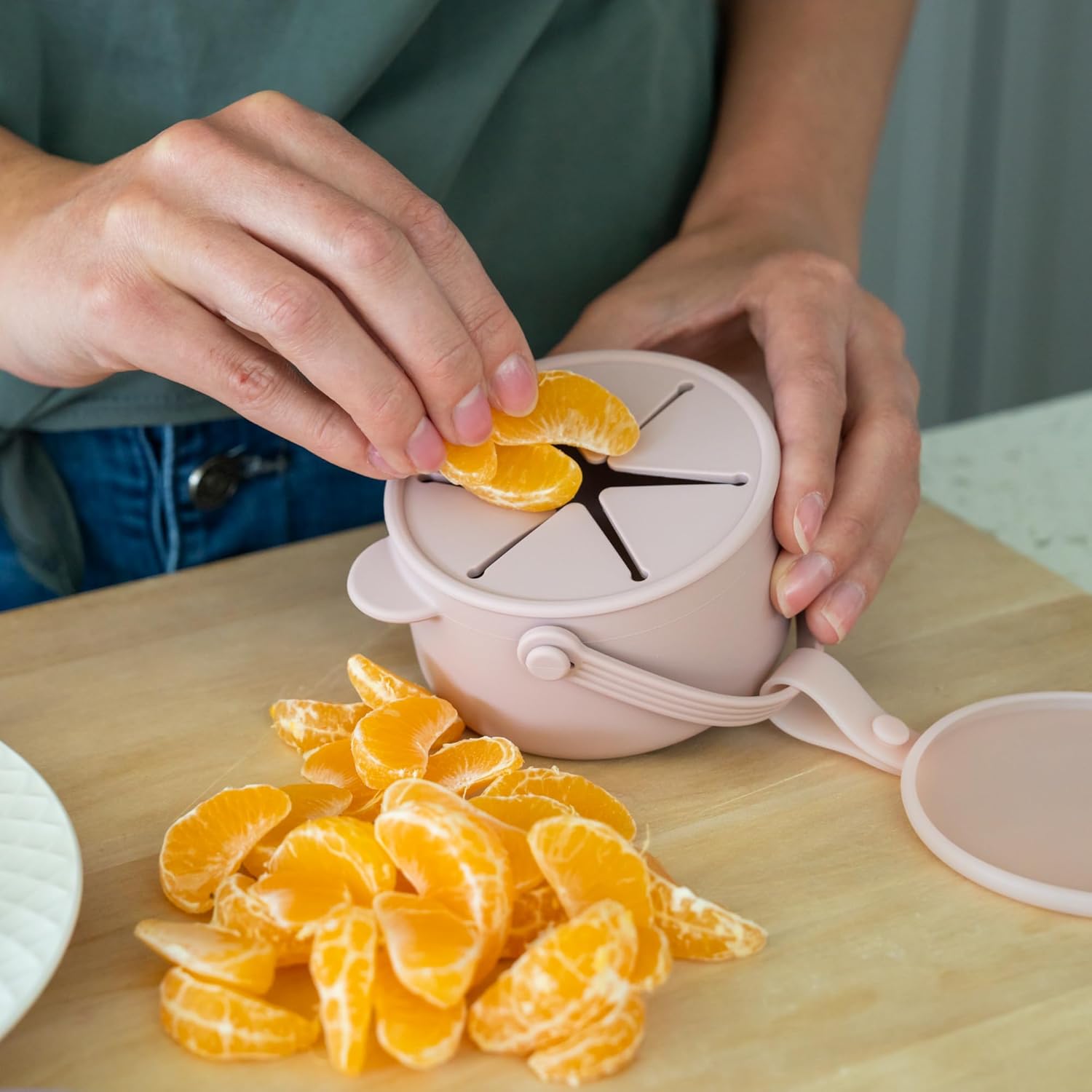 - Munch on the Move with Ease: Our 4.2” silicone snack cup promises easy handling and effortless on-the-move munching; The petal-like opening on these baby snack cups welcomes those little fingers, making snacking a breeze every time