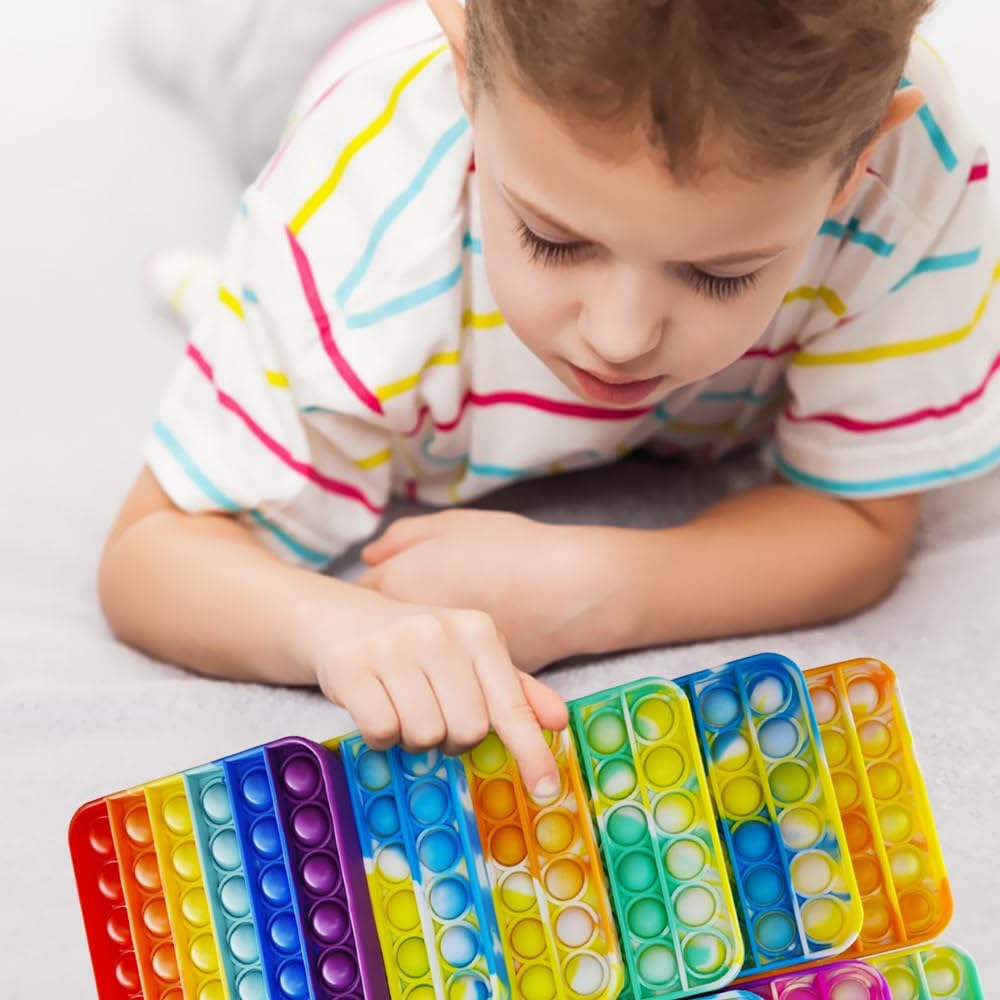 12 Pcs Pop Bubble Fidget Toys for Party Favors, Stress Relief Pressure Relieving Toys for Kids, Pop Bulk Toddler Toys for Christmas Valentine Birthday Gifts and Classroom Prizes