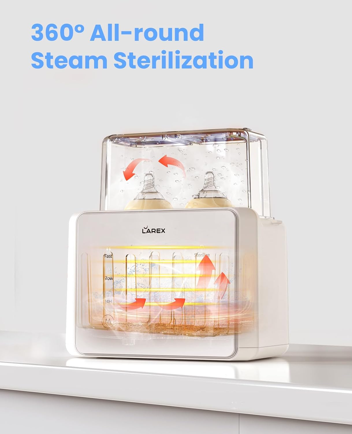 LAREX Double Bottle Warmer, 11-in-1 Fast Baby Bottle Warmer for Breastmilk and Formula, with Timer, Fits 2 Bottles, Accurate Temp Control, Milk Warmer with Thaw, Steri-lizing, Keep Warm, Heat Food