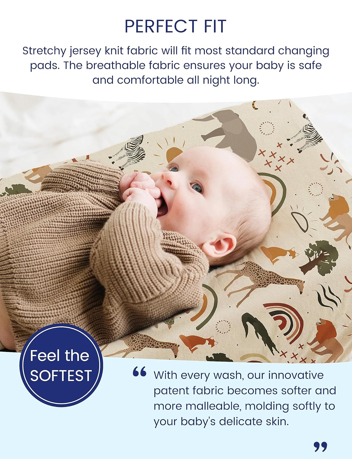 TotAha Premium Stretchy Jungle Animal Changing Pad Covers, Hypoallergenic Changing Table Cover, Silky Comfort, Buttery Soft, Calming Effect, All-Season Jersey-Knit 5'' Deep Pocket