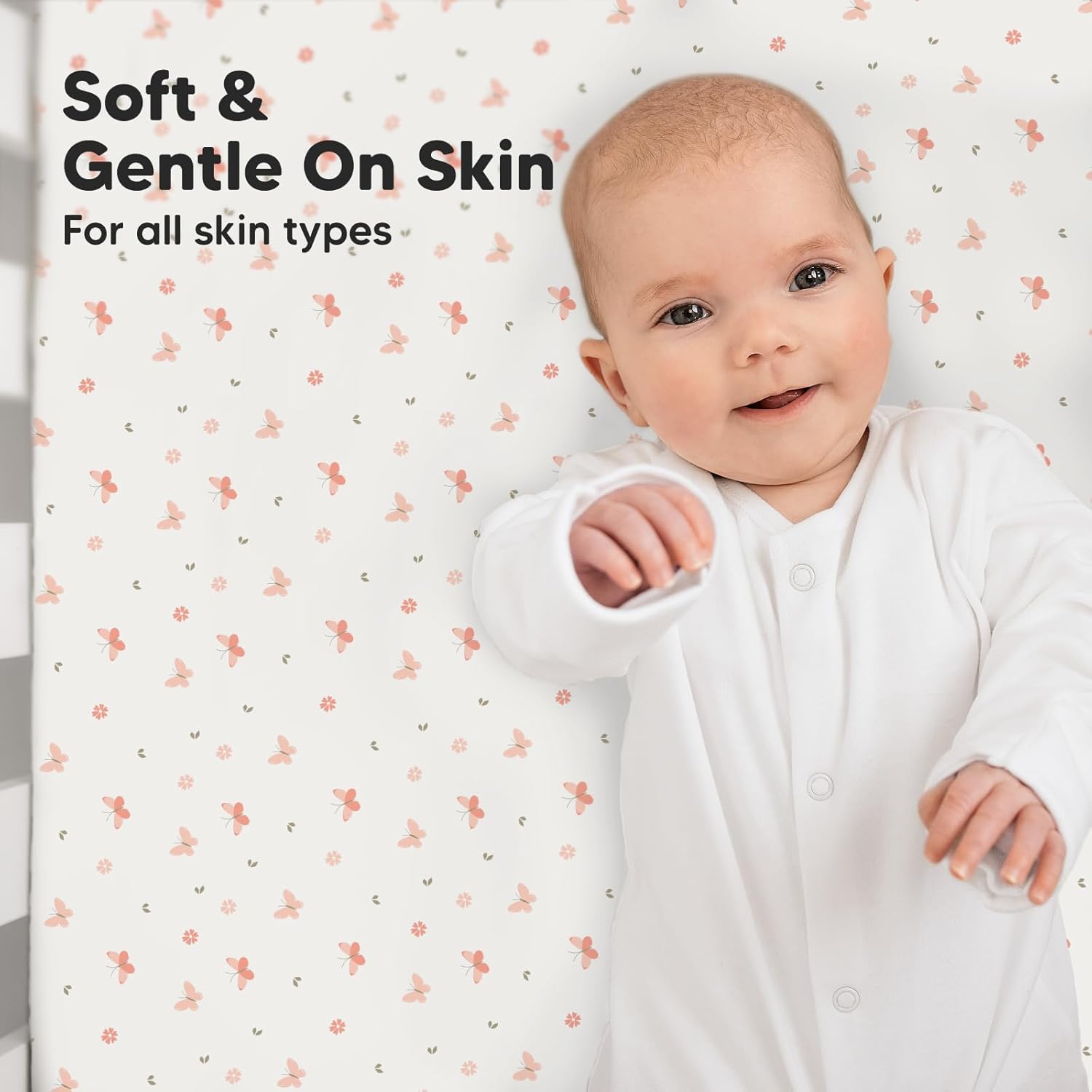 KeaBabies 2-Pack Baby Crib Sheets for Boys, Girls - 52x28 Viscose Derived from Bamboo Toddler Bed Sheets Neutral, Fitted Crib Mattress Cover for Standard Baby Bedding, Soft & Cozy (Butterflies)