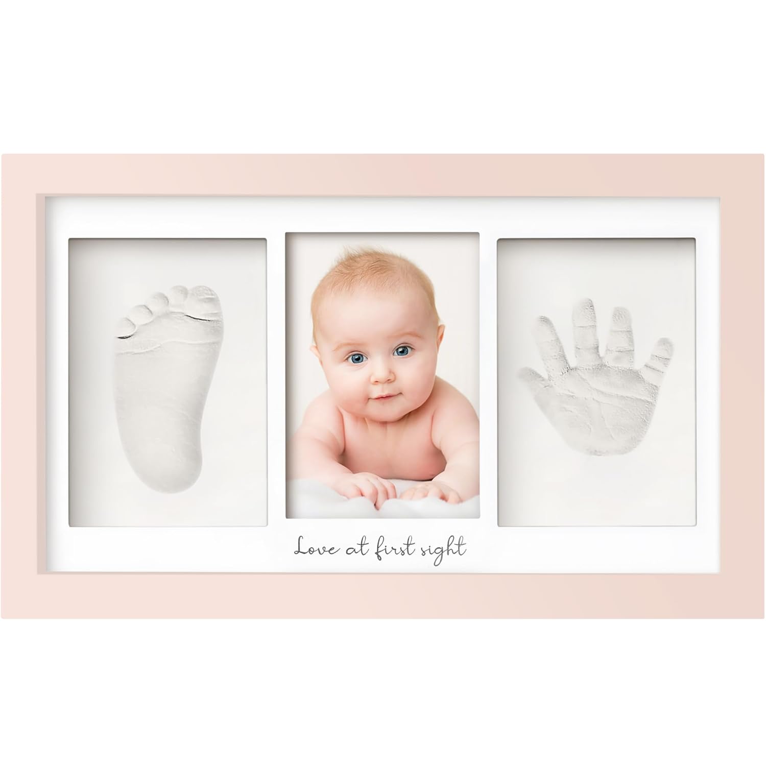 Baby Hand and Footprint Kit - Clay Handprint Keepsake Frame, Newborn Nursery Picture Frame, Personalized New Mom Gifts for Baby Shower & Registry (Petal Pink)