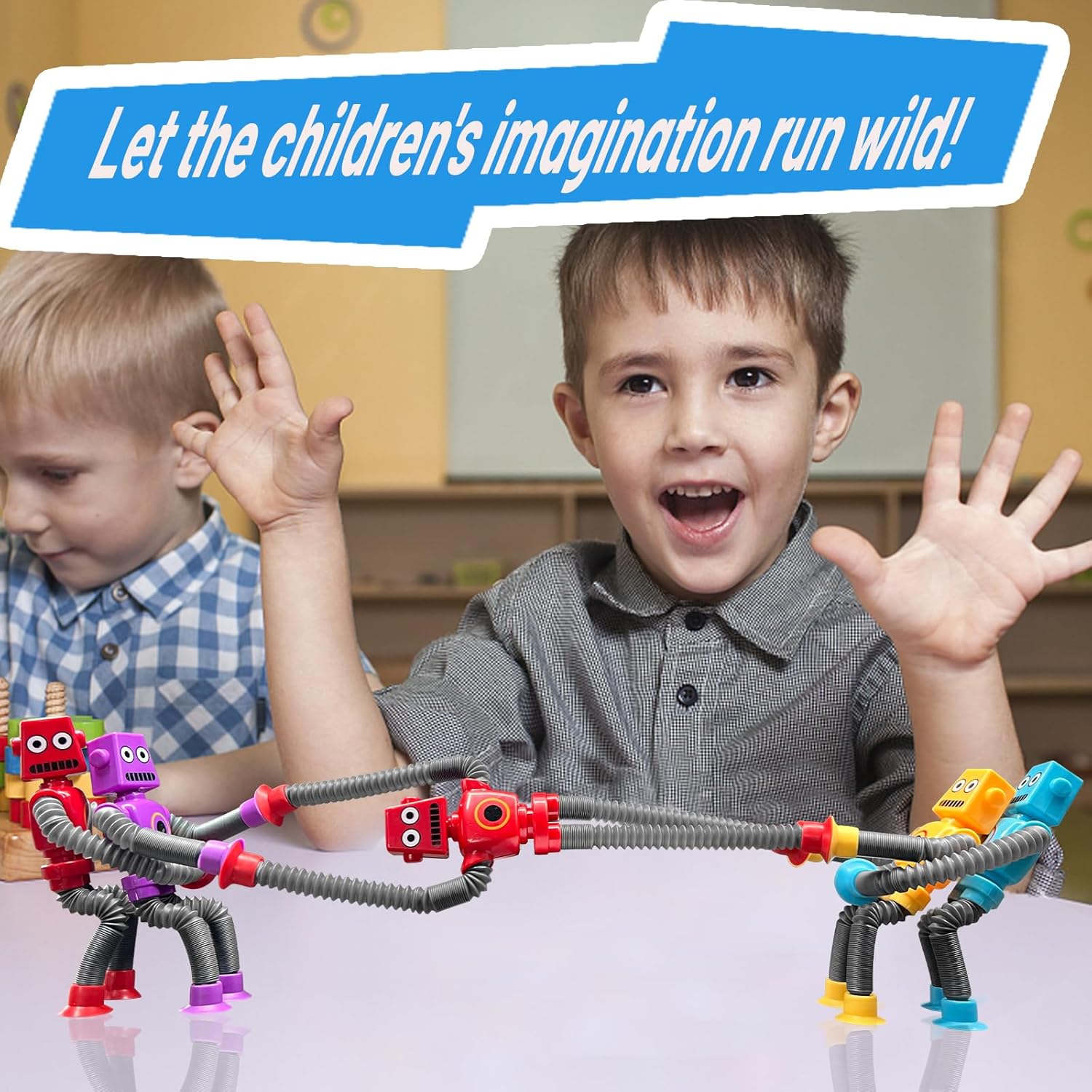 8PCS Pop Tubes Suction Cup Robot Toys Robot Pop Tubes Fidget Tubes Sensory Toys Pack Shape Changing Telescopic Tube Imaginative Play Stimulating Creative Learning Fidget Toys for Girls Boys