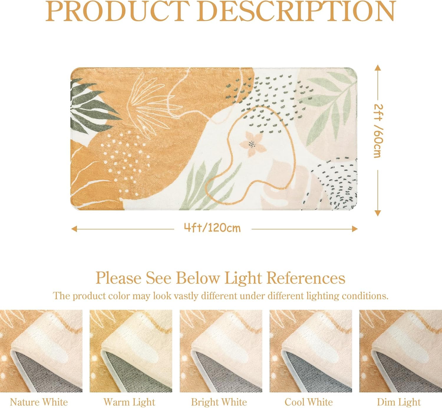 Lahome Washable Rugs for Bathroom - 2x4 Lightweight Non-Slip Laundry Room Rug Kitchen Sink Floor Mat Soft Throw Small Runner Rug, Boho Botanical Print Indoor Rug Runner for Hallway Entrance Bedroom