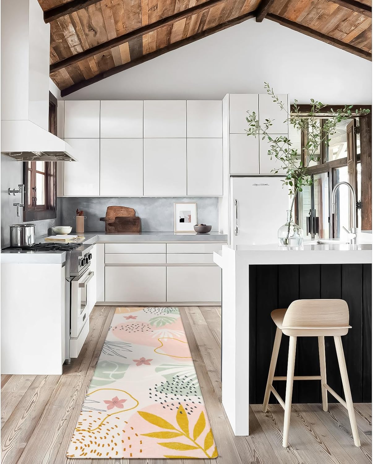 Lahome Washable Rug 2x8 - Hallway Kitchen Bathroom Carpet Runner, Lightweight Pink Botanical Print Laundry Non Slip Throw Rug, Bedroom Entryway 8ft