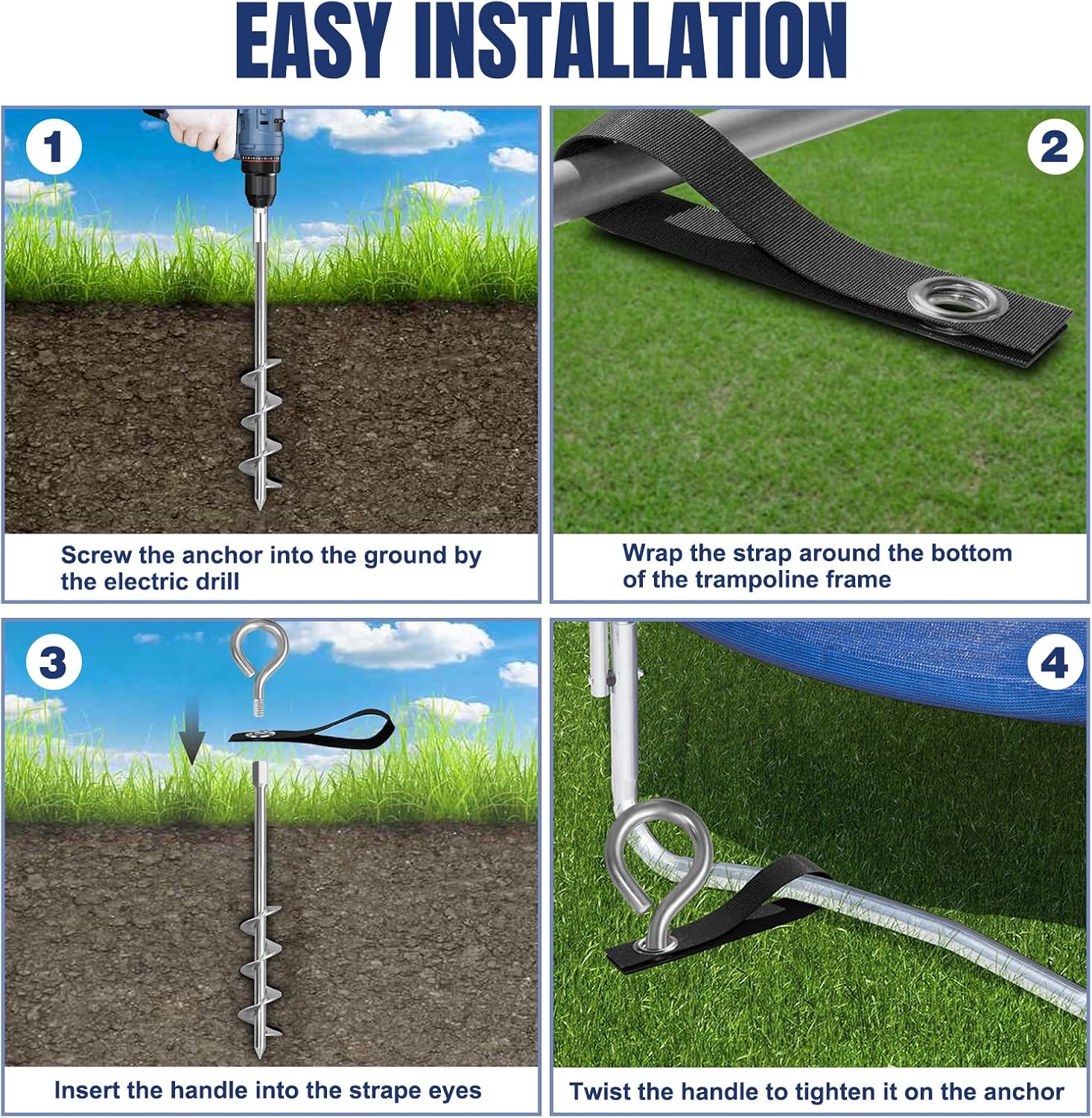 - Durable Performance: Unlike other stakes, these trampoline anchors resist deformation, corrosion, and rust, ensuring long-term, sustainable performance.