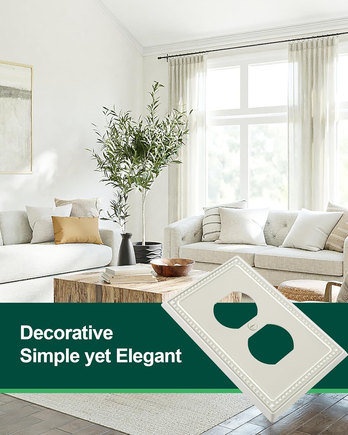 4-Pack Duplex Outlet Cover Plate, Light Almond Metal Wall Plates for Electrical Outlets, 1 Gang Receptacle Light Switch Cover, Pearls Decorative Switch Plates and Outlet Covers