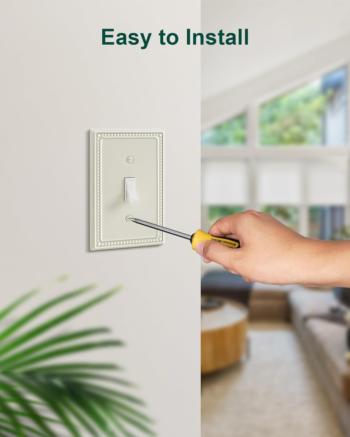 - Elegant Light Almond Finish - The light switch cover plate features a soothing light almond finish, not as dark or yellow as ivory, offering a warmer tone than stark white. This elegant finish adds a fresh appeal to your room and seamlessly blends with any interior style, enhancing the overall aesthetic of your home decor.