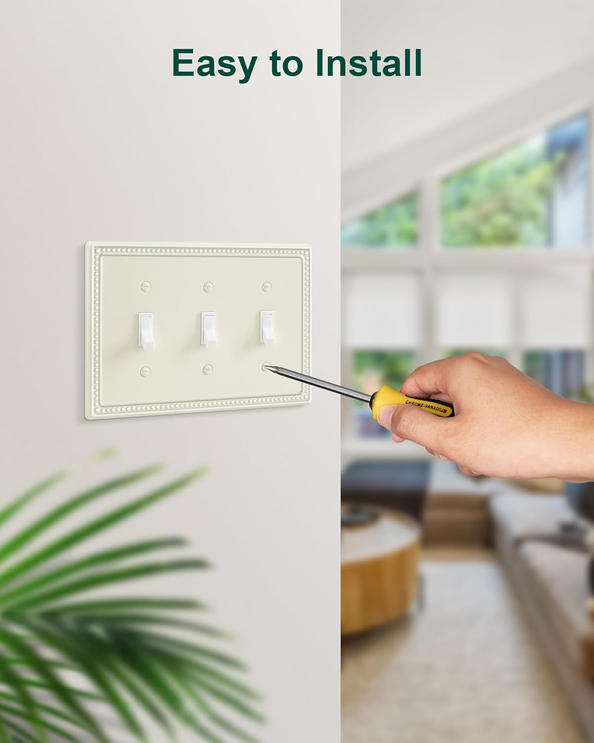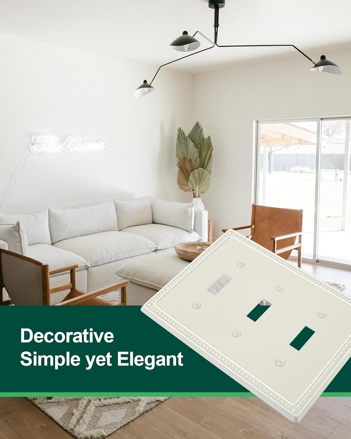 - Elegant Light Almond Finish - The triple light switch plate cover features a soothing light almond finish, not as dark or yellow as ivory, offering a warmer tone than stark white. This elegant finish adds a fresh appeal to your room and seamlessly blends with any interior style, enhancing the overall aesthetic of your home decor.