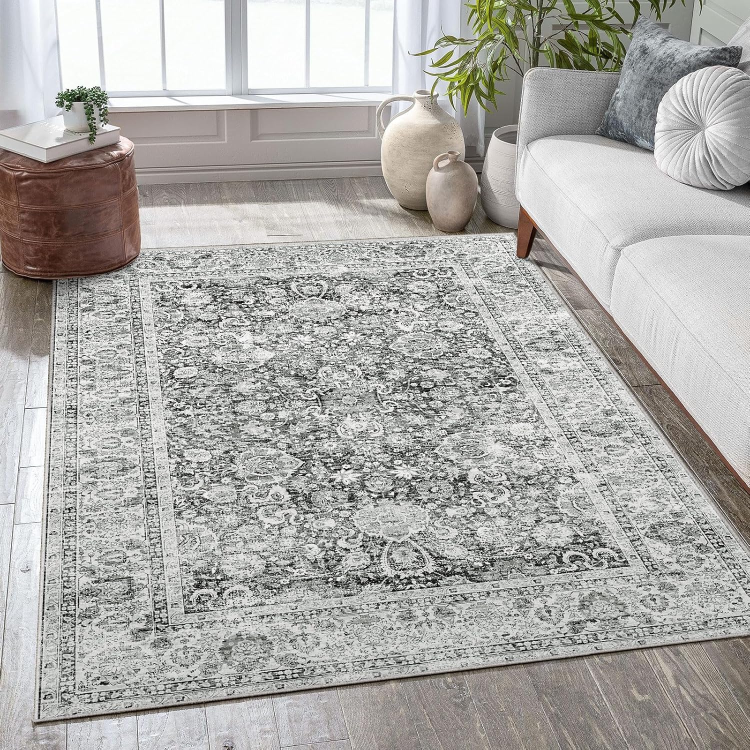 Area Rugs 5x7 - Grey Area Rug for Living Room, Bedroom & Dining Room - Soft Faux Wool, Low-Pile Distressed Carpet Print Floor Covering
