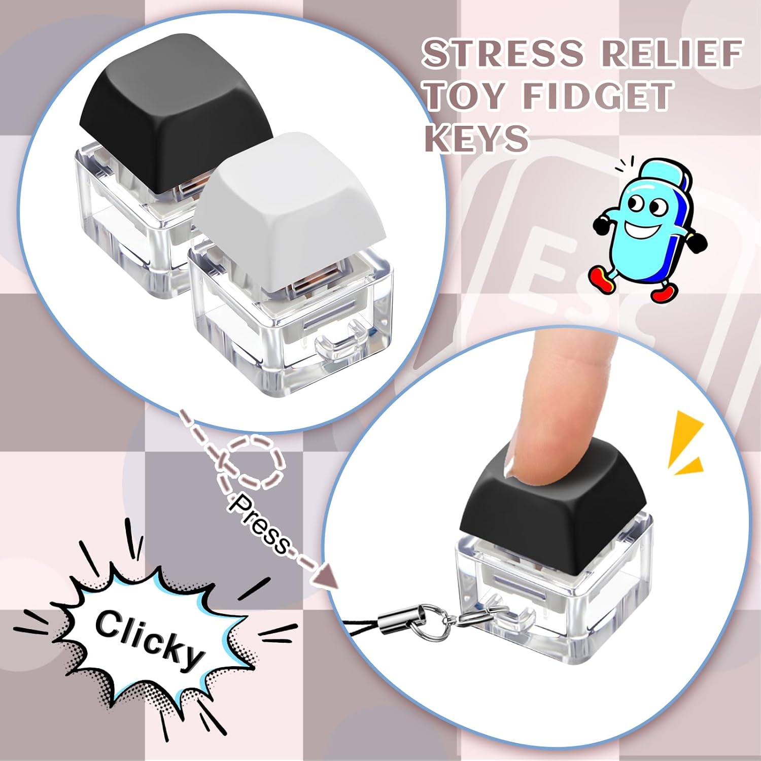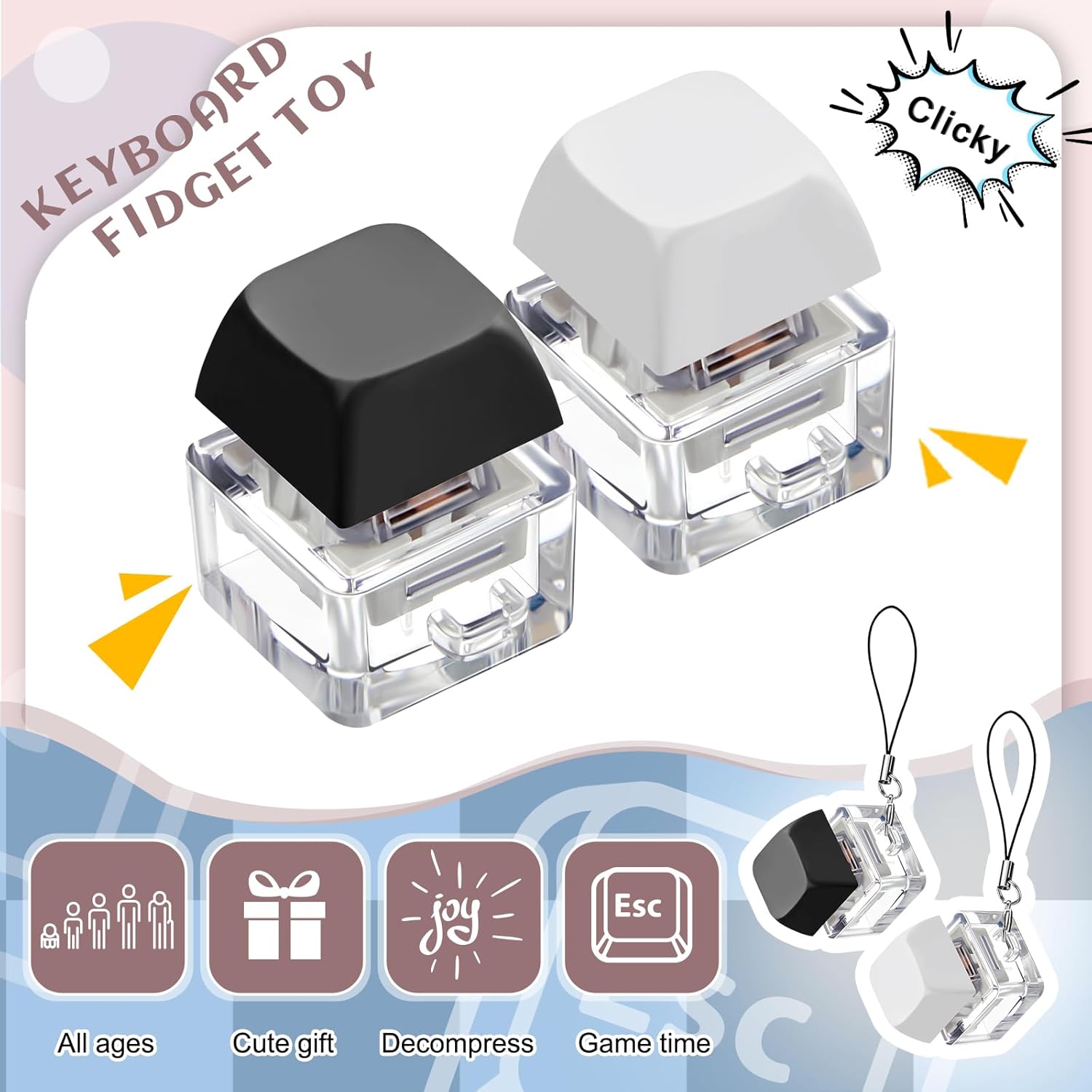 - Easy to Carry: each fidget clicker comes with a lanyard for you to hang on your purses, bags, clothes, and on your windows, doors, wall; With this lanyard, you can take it with you to school, office, trip as you wish