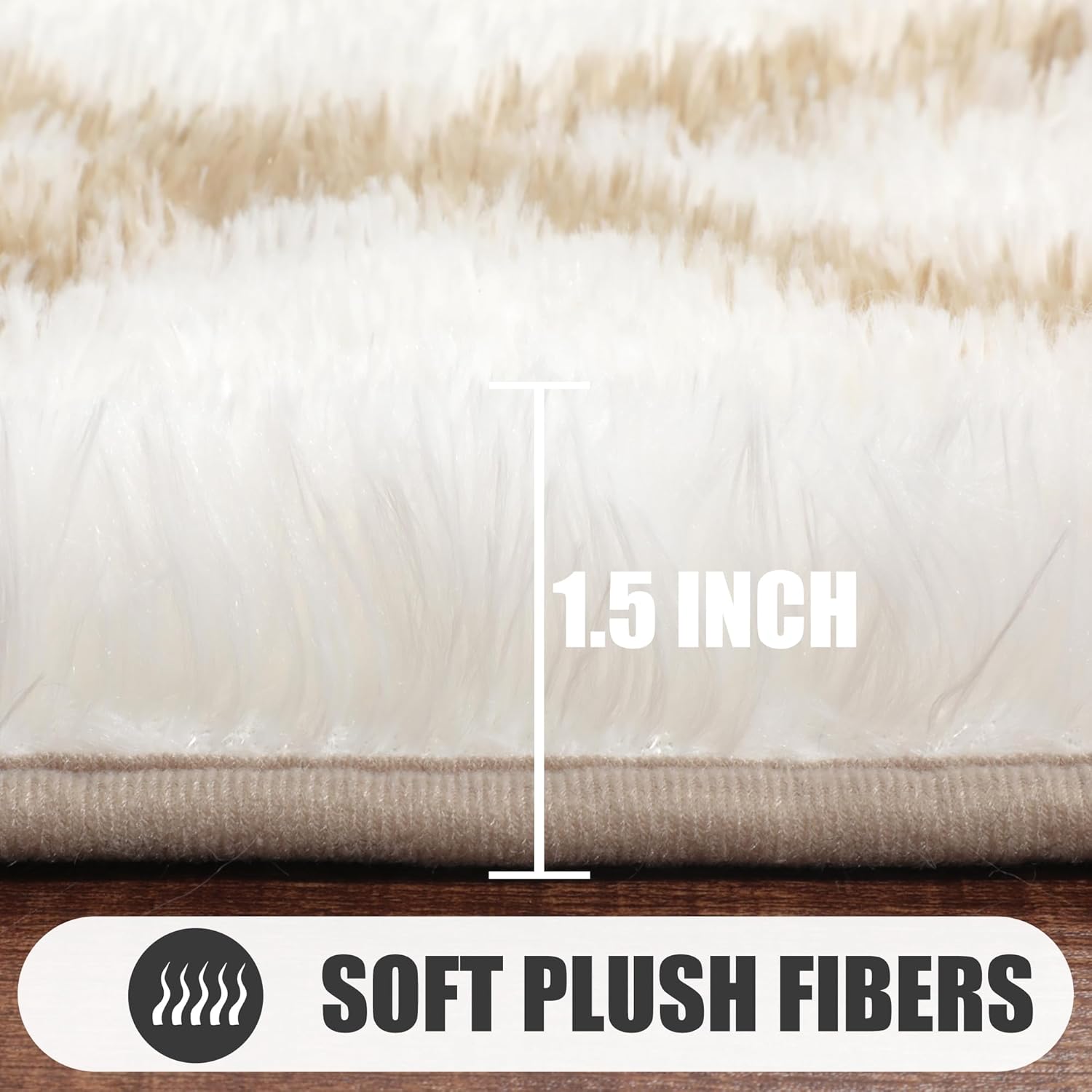 ONASAR Area Rugs for Bedroom Living Room, Washable 4x6 Fluffy White and Beige Throw Rug, Geometric Boho Shaggy Soft Plush Floor Carpet for Nursery Kids Girls Boys Teen Dorm Home Decor Aesthetic