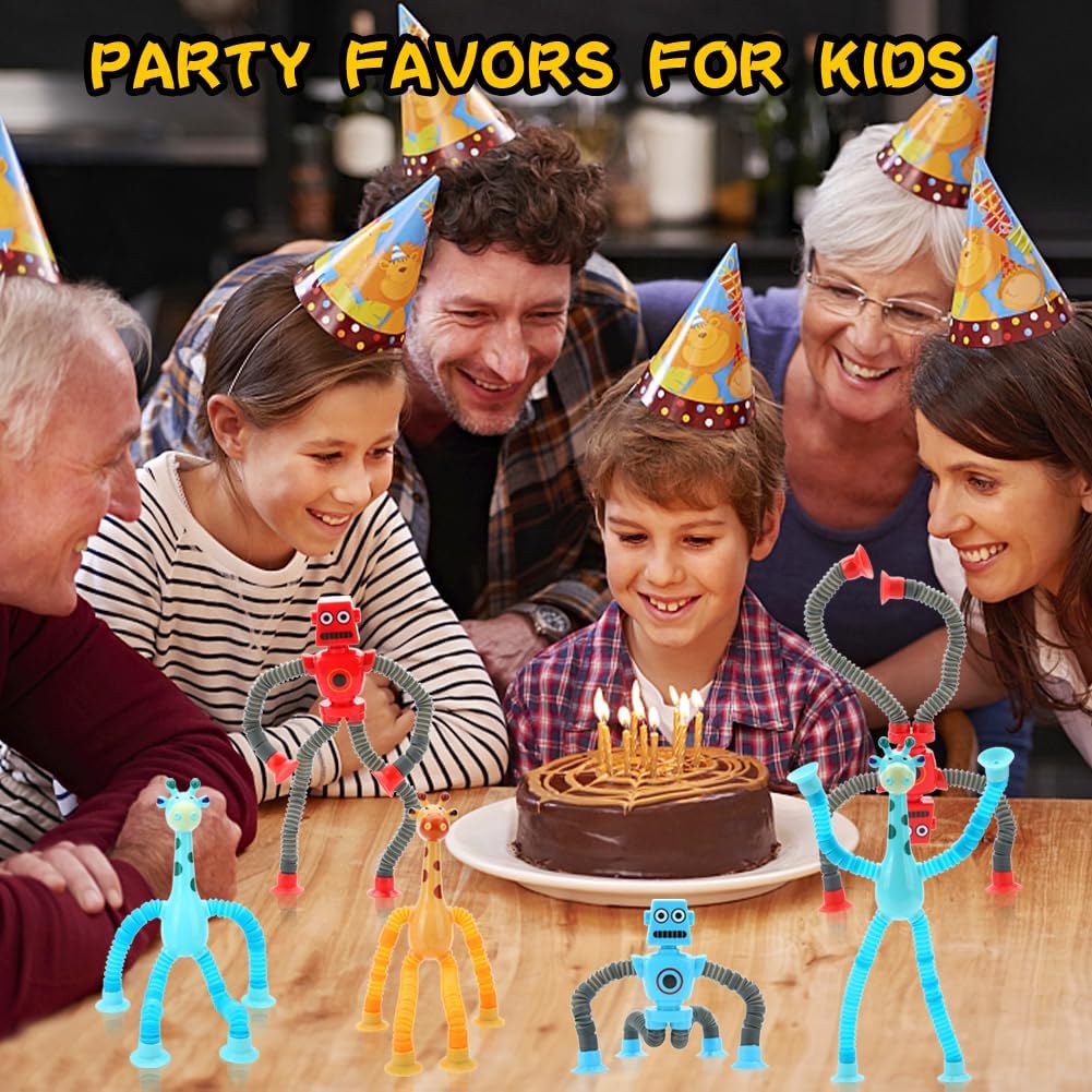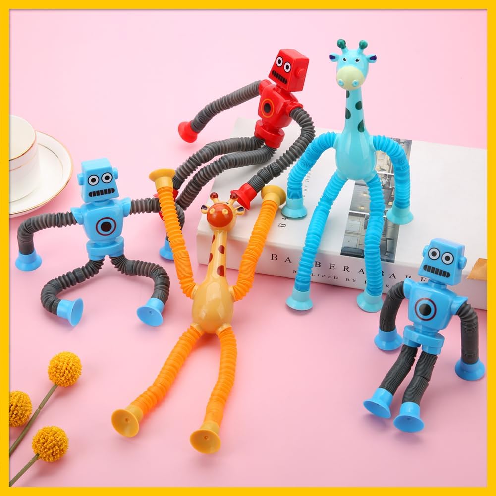 - 8 Sensory Telescopic Suction Cup Toy Sets: The set includes 4 Robot pop tubes toys and 4 giraffe sensory suction cup toys. The robot and giraffe's transformable limbs encourage imaginative play and stimulate creative thinking.