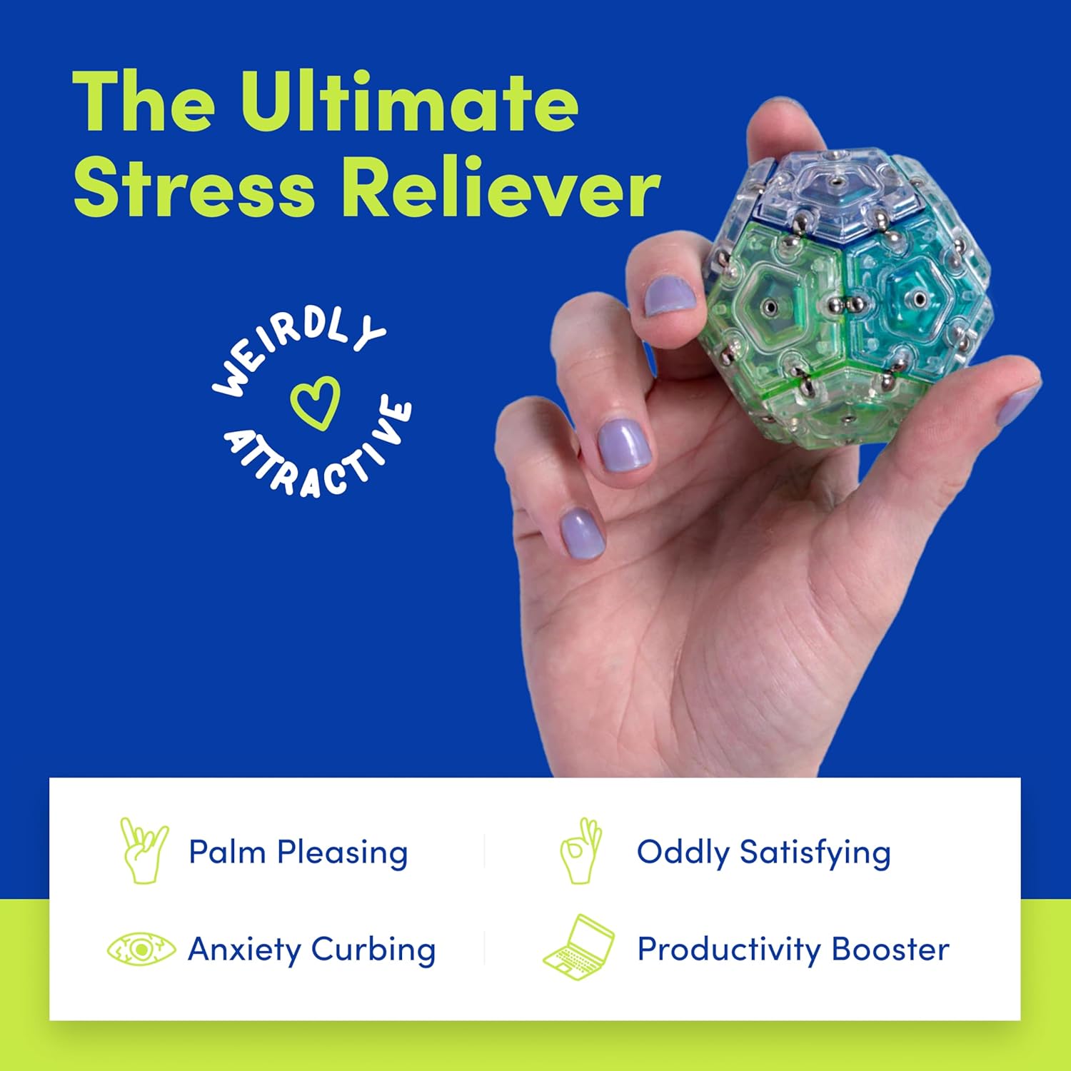 - THE ORIGINAL MAGNETIC FIDGET SPHERE: Palm pleasing pentagons meet powerful rare earth magnets in this delightfully distracting desktop dodecahedron (distractahedron, if you will). Looking for a deconstructable, reconstructable design object that breaks down so you don’t have to? Then we made Geode for you!