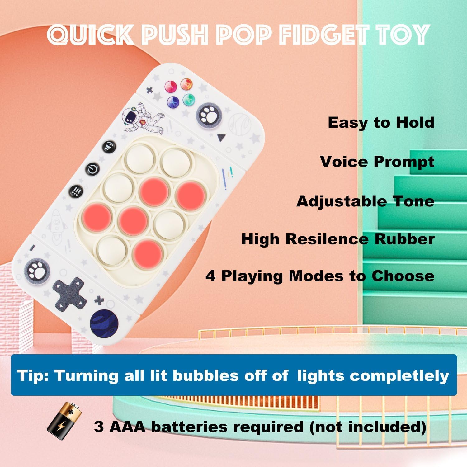 Quick Push Bubbles Pop Fidget Toy It Game, Fast Push Light Up Pop Interactive Sensory Toy, Fast Push Button Game for Kids Adult, Stress Relief Handheld Game Present Toy for 3 4 5 6 7 Years Boy Girl